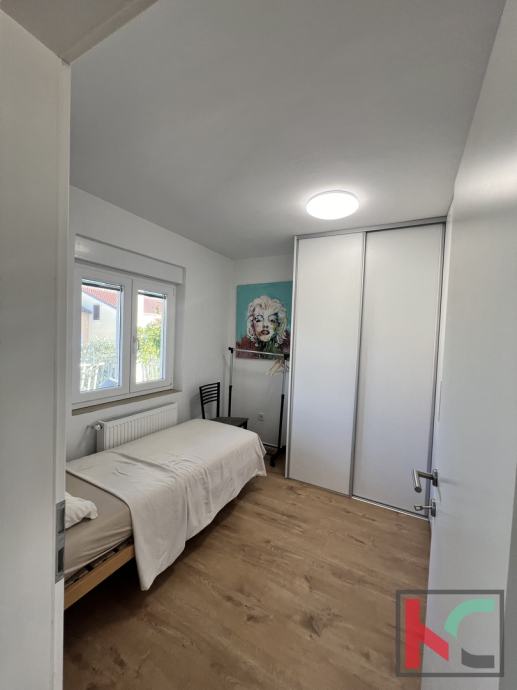 Prodaje se stan površine 126 m2, smješten na prvom katu dvokatnice u mirnom dijelu Poreča. Ova nekretnina ističe se prostranošću te funkcionalnim rasporedom koji uključuje dvije spavaće sobe. Stan je orijentiran na istok, jug i zapad, što omogućuje obilje prirodne svjetlosti tijekom cijelog dana te vrlo sunčanu atmosferu.