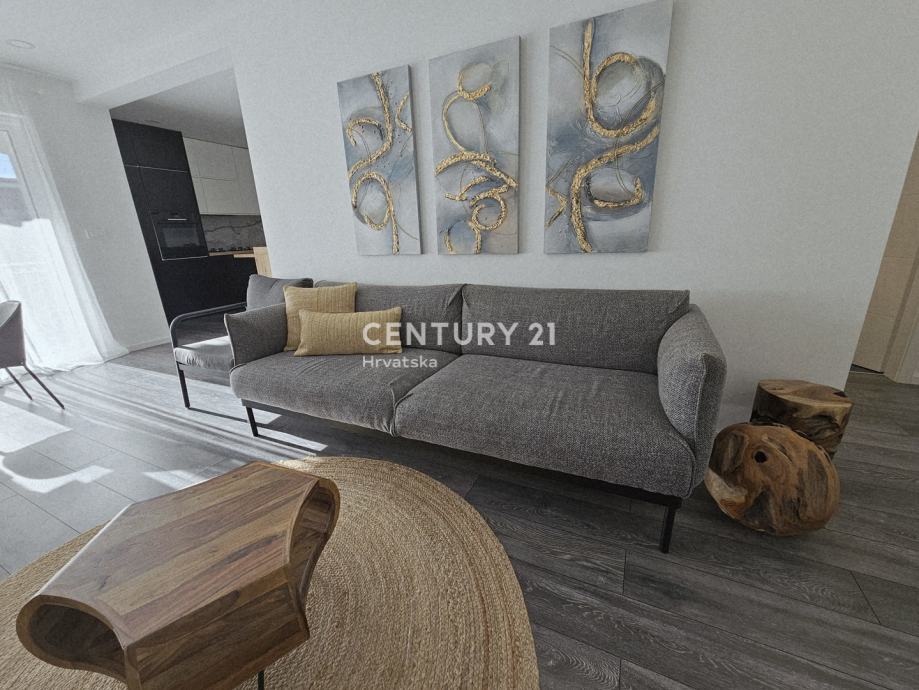 Stan se sastoji od prostranog dnevnog boravka s izlazom na terasu, moderne kuhinje s blagovaonicom, tri spavaće sobe, od kojih je jedna preuređena u garderobu, dvije kupaonice sa tuš kabinama te vešeraja/špajze. Master spavaća soba ima vlastitu kupaonicu i izlazom na drugu terasu, zajedničku sa još jednom spavaćom sobom.