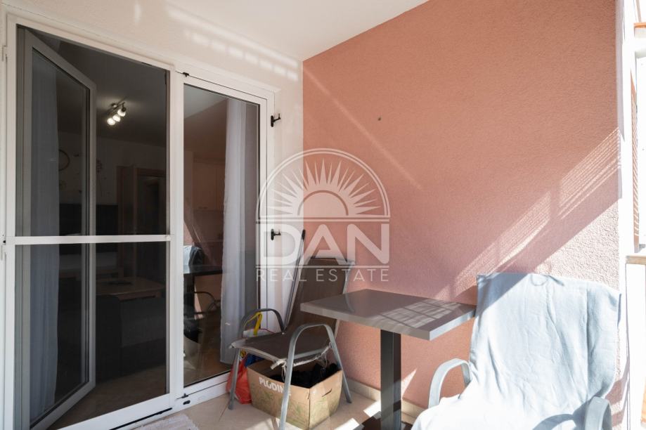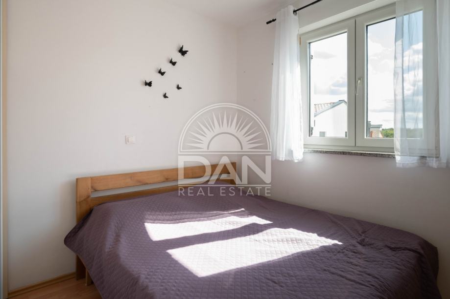 U okolici Poreča prodaje se u potpunosti namješten stan smješten na prvom katu uredne stambene zgrade s ukupno šest stanova. Stan ima površinu od 54 m² i sastoji se od dnevnog boravka, kuhinje, dvije spavaće sobe, kupaonice, ulaznog hodnika te natkrivene terase.