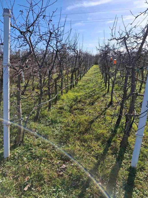 Zemljište je posađeno sa stablima jabuka i trešanja ca. 400 stabala održavano, rezano, njegovano te visoki urod.Zemljište je ograđeno , idealna nekretnina za opuštanje u prirodi.