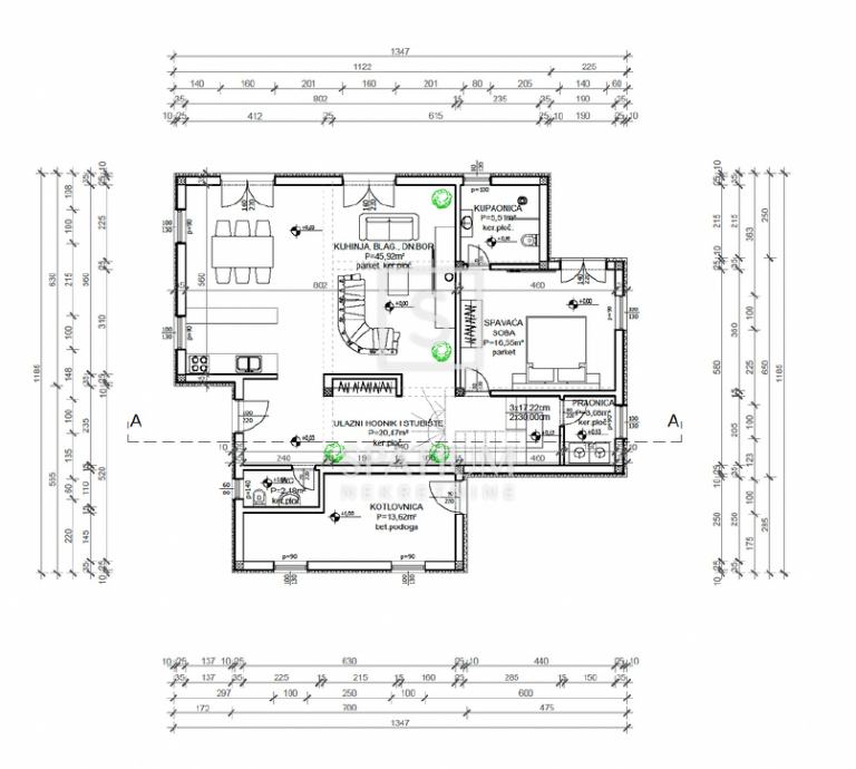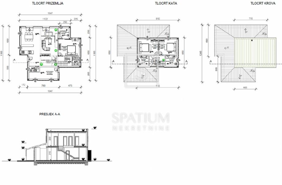 Sastoji se od prizemlja i kata ukupne površine interijera 154m2. (ukupna korisna površina iznosi 487m2)