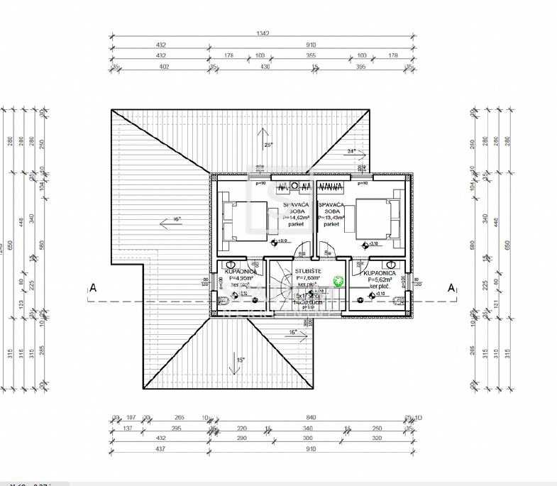 Unutarnjim stepeništem se dolazi na kat koji se sastoji od hodnika, dvije spavaće sobe i dvije kupaonice.