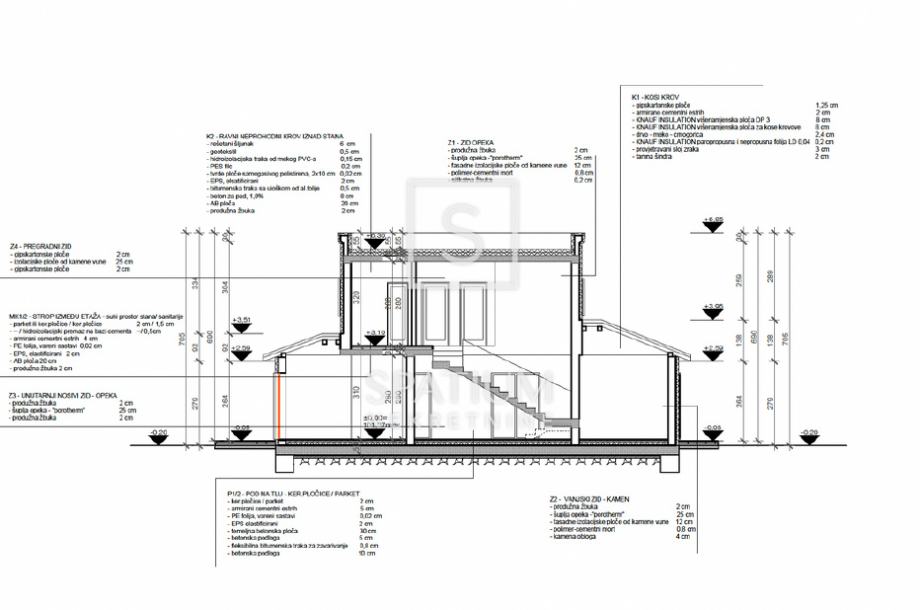 Sastoji se od prizemlja i kata ukupne površine interijera 144,90 m2. (ukupna korisna površina iznosi 598 m2)