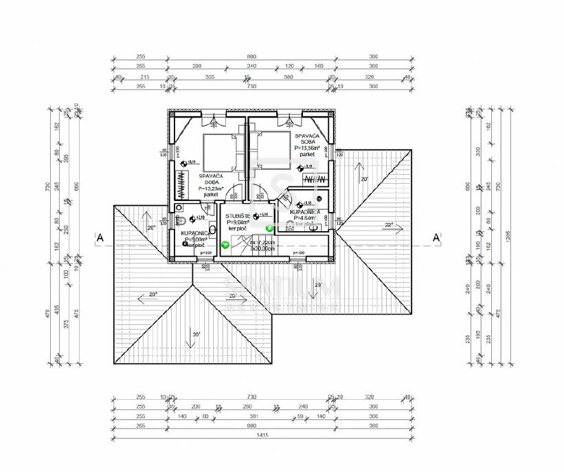 Unutarnjim stepeništem se dolazi na kat koji se sastoji od hodnika, dvije spavaće sobe i dvije kupaonice.