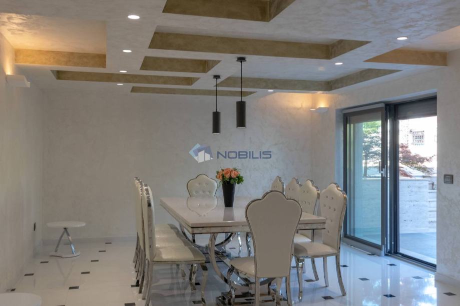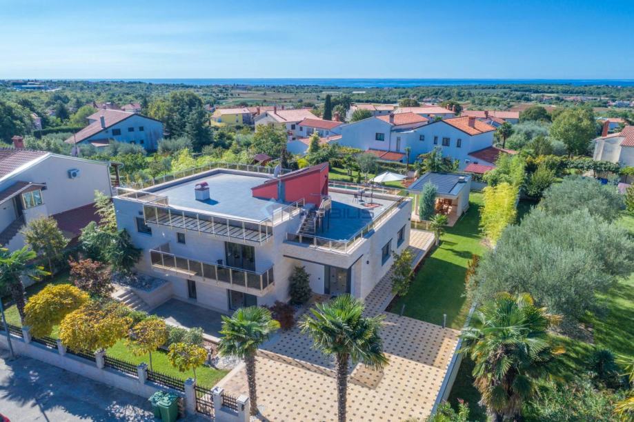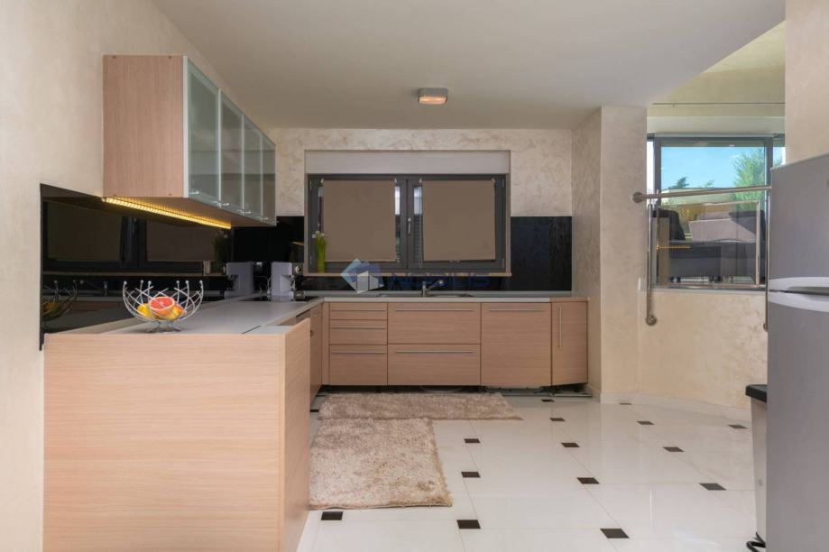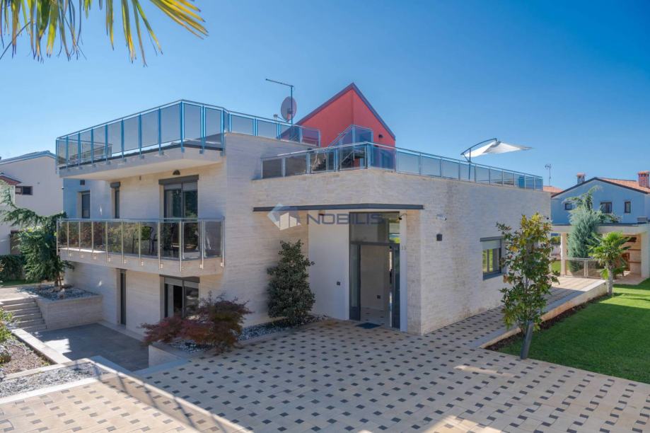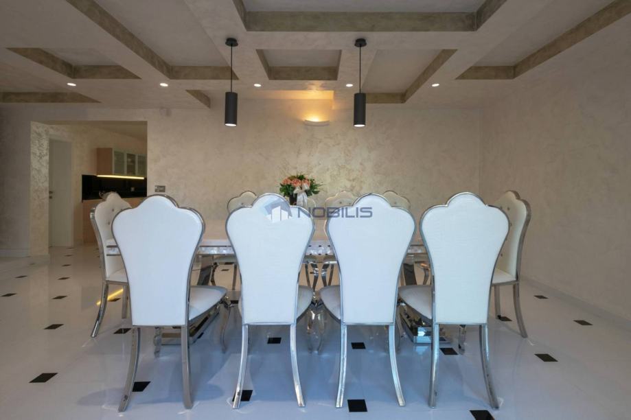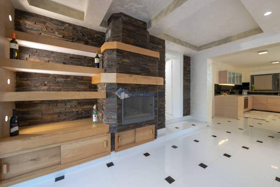 Kuća je veličine cca.350 četvornih metara na 2 etaže na parceli od 1400 m2 te se sastoji od 4 spavaćih soba, 5 kupaonice, s nizom terasa za sunčanje i hladovinom, dviju sauna velikim bazenom za kupanje te manjim namijenjen za djecu, velikom vanjskom sjenicom sa kuhinjom i roštiljem.