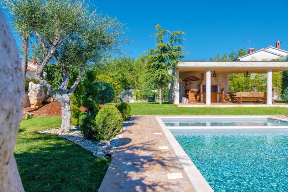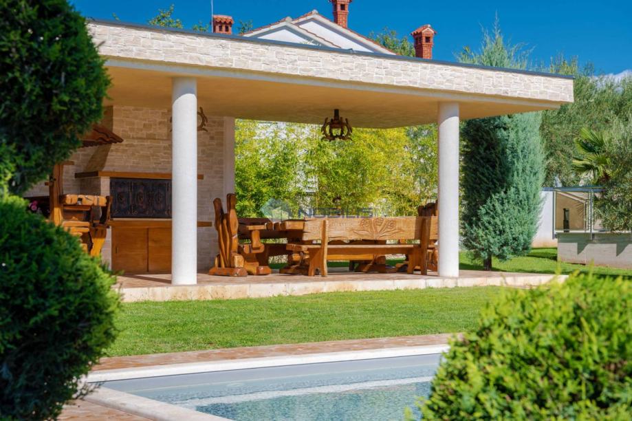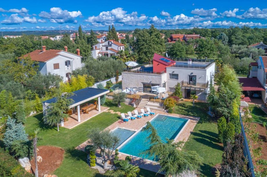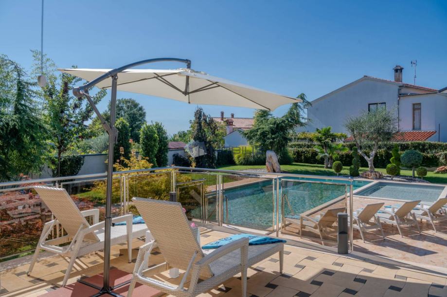 Poreč, Kukci - ova prostrana samostojeća kuća s bazenom nalazi se u popularnom povijesnom gradu Poreču, samo 3 km od mora i centra u mirnom prigradskom naselju koje ima svoj dućan, restoran, bar te igralište.