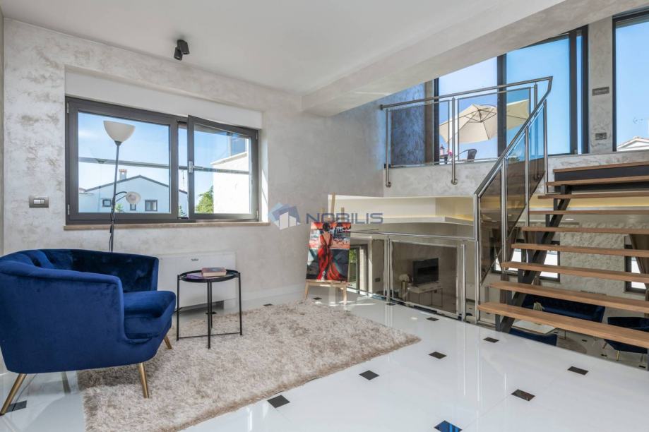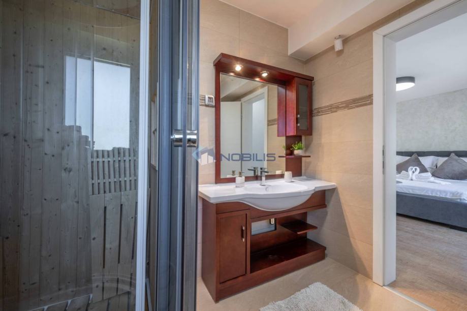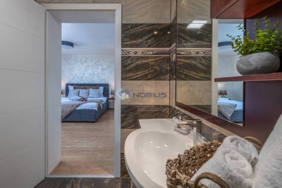 Na katu kuće se nalaze spavaće sobe sa kupaonama i saunama te stepeništem koje vodi na prekrasnu krovnu terasu.