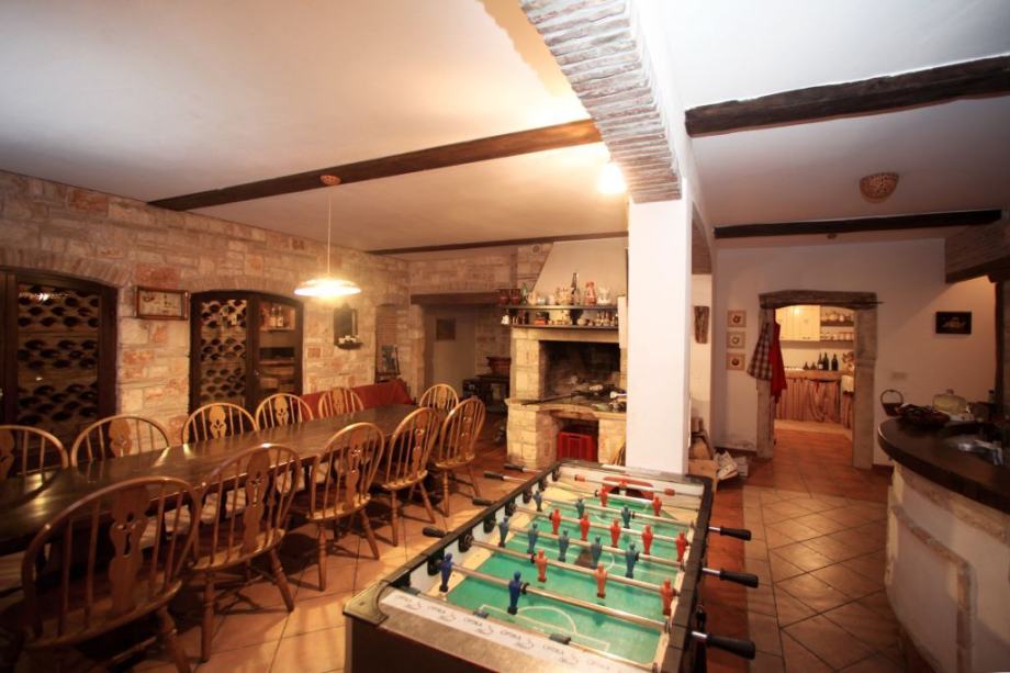 Prekrasna Vila u Poreču smještena u mirnome naselju okružena prirodom 1km od mora. Površine 420m2 koji se protežu na tri etaže. Nešto posebno i vrijedno nalazi se u podrumu kuće, tradicionalna istarska konoba u kojoj se nalazi mini kameni bar, velika blagovaona sa kaminom, opremljena kuhinja, toalet i vinski podrum u staklu. Konoba je povezana sa ostalim dijelom kuće te se tako stepenicama odlazi u prizemlje kuće. Sastoji se od dvije spavaće sobe i dvije kupaone sa tuš kabinama, prostrani dnevni boravak sa kaminom koji ima izlaz na zimski vrt i na dvorište kuće, u nastavku je blagovaona i kuhinja sa spremištem. Na prvome katu našle su se još tri spavaće sobe, jedna master sa izlazom na balkon koja ima vlastitu raskošnu kupaonu sa kadom i tuš kabinom i walk in closet. U hodniku kata se nalazi dodatan dnevni prostor koji može služiti kao radni prostor,mini teretana itd. sa izlazom na balkon. Na ulazu u drugu kupaonu smjestila se prostorija cijela opremljena ugradbenim ormarima što čini dodatan prostor za sve što je potrebno. Sve prostorije i spavaće sobe su klimatizirane,a grijanje je radijatorima na naftu. Spremište se nalazi u podrumu kuće. Kuća se prodaje u potpunosti namještena i opremljena.Iz prizemlja se izlazi na veliku natkrivenu terasu, dvorište od cca 1250m2, sunčalište i prekrasan bazen od 77m2.Oduševiti će Vas ovo lijepo uređeno zeleno dvorište ispunjeno biljkama i palmama koje daju poseban ugođaj. U dvorištu se još nalazi grill zona sa kaminom,krušnom peći i velikim kamenim stolom natkrivenim vinovom lozom, vanjsko spremište.