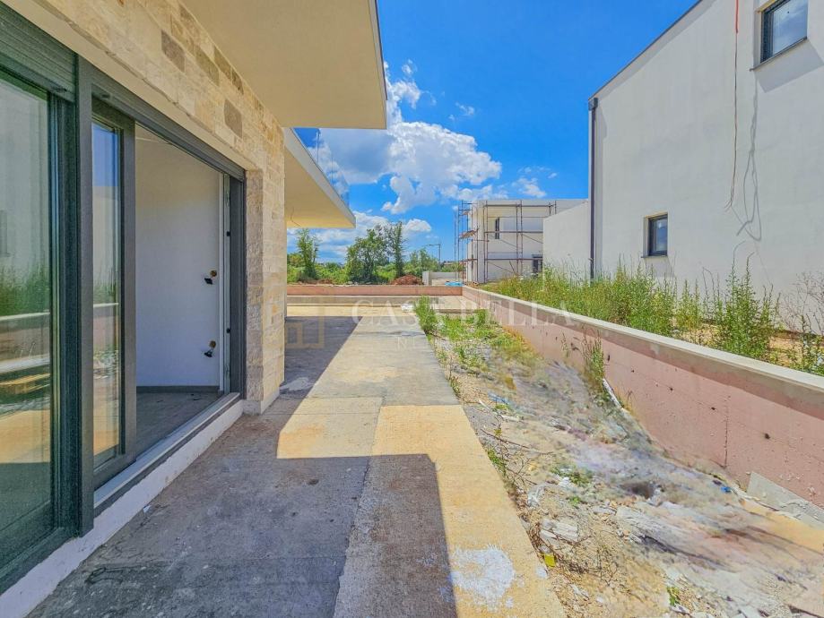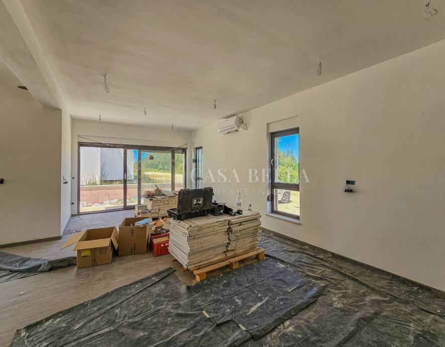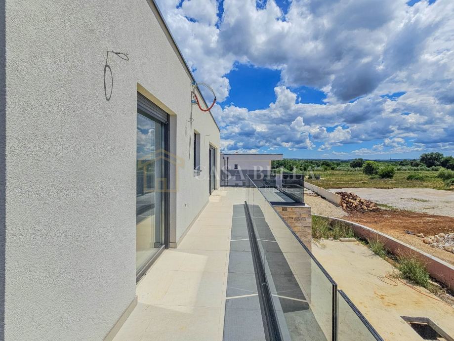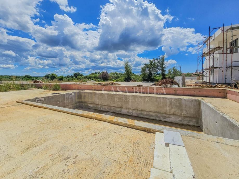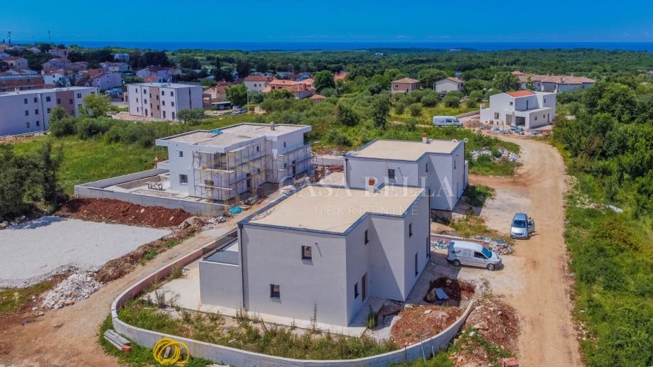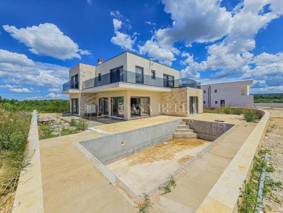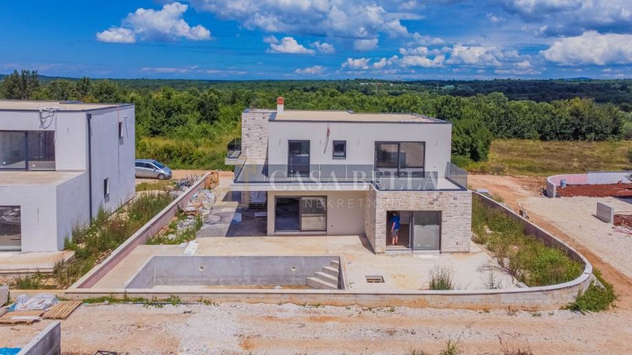 Luksuzna vila s grijanim bazenom!U malom i mirnom gradiću Tar, udaljenom 5 km od Poreča i samo 1,5 km od prekrasnih plaža, nalazi se ova luksuzna vila. Smještena u mirnoj ulici, pruža vlasnicima privatnost i mir.Vila je izgrađena na zemljištu od 590 m², a ukupna površina iznosi 240 m², raspoređena na dvije etaže. U prizemlju se nalazi prostrani dnevni boravak s otvorenom kuhinjom i blagovaonicom, jedna spavaća soba, kupaonica, ostava i WC. Iz dnevnog boravka izlazi se na terasu s koje se pristupa uređenoj okućnici s grijanim bazenom od 32 m² i sunčalištem. Unutarnje kamene stepenice vode na prvi kat gdje su smještene tri spavaće sobe, svaka sa svojim kupaonicom i terasom. Jedna spavaća soba ima i garderobu.Vila je građena od visokokvalitetnih materijala, s podnim grijanjem i klimatizacijom. Posebnost ove vile je spoj modernih i kamenih elemenata koji joj daju poseban šarm. Vila se prodaje kao "ključ u ruke", potpuno uređena, ali bez namještaja, što ostavlja dovoljno prostora za uređenje prema željama i potrebama kupca.Cijena vile je izražena bez PDV-a, a planirani završetak gradnje je kraj ljeta 2024. godine.Zbog iznimne lokacije, ova luksuzna vila predstavlja izvrsnu investiciju za turizam, odmor ili cjelogodišnje stanovanje. Na samo pet minuta vožnje nalaze se prekrasne plaže, kvalitetni restorani, kafići, šetnice, biciklističke staze, trgovine i razni drugi sadržaji.