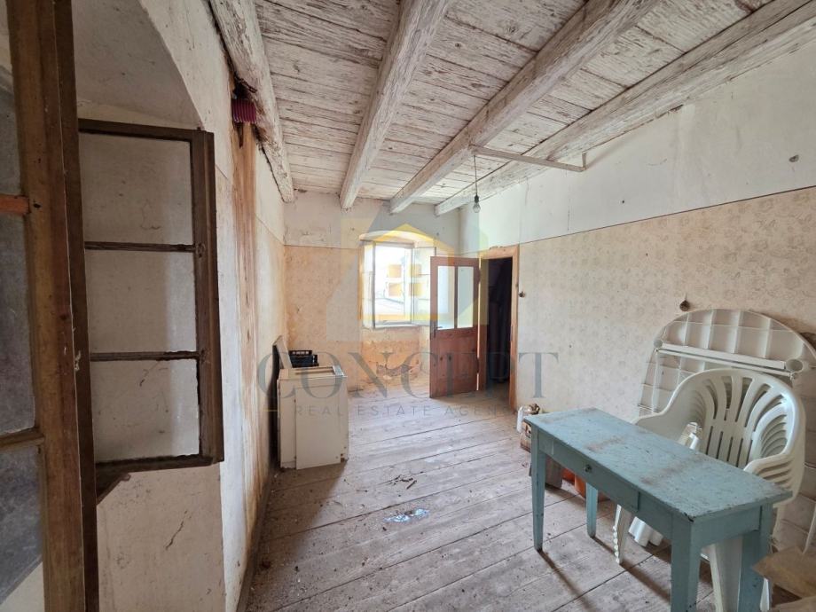 Unutrašnjost zahtijeva renovaciju, ali kuća ima kvalitetne konstruktivne temelje i velik potencijal za uređenje prema modernim standardima. Postoji mogućnost uređenja manje terase ispred ulaza.
