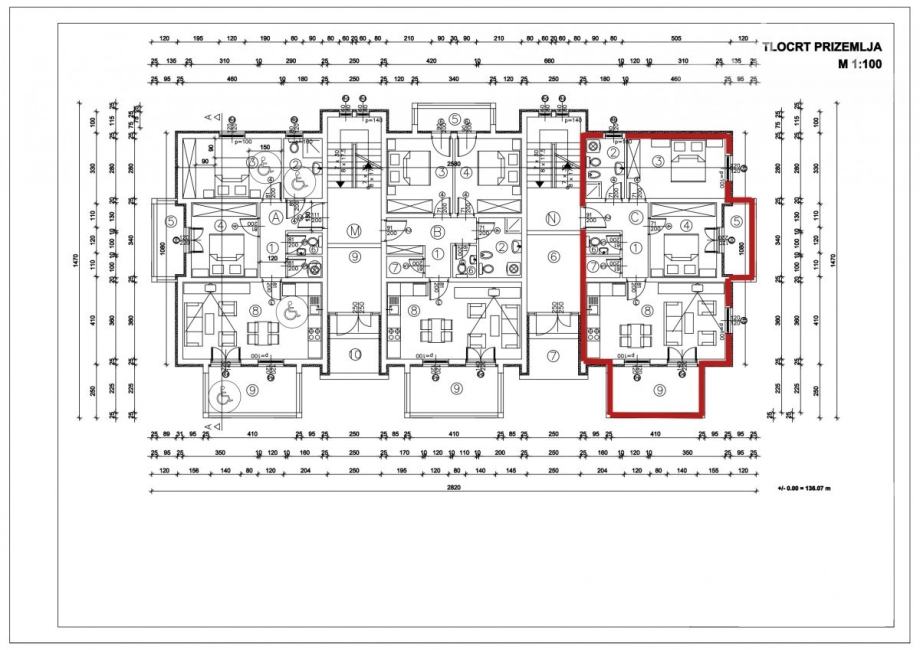 Sastoji se od ulaznog hodnika, open space prostora u kojem se nalazi kuhinja, blagovaona i dnevni boravak sa izlazom na balkon, dvije spavaće sobe od kojih jedna ima izlaz na svoj balkon, kupaonice i toaleta za goste.