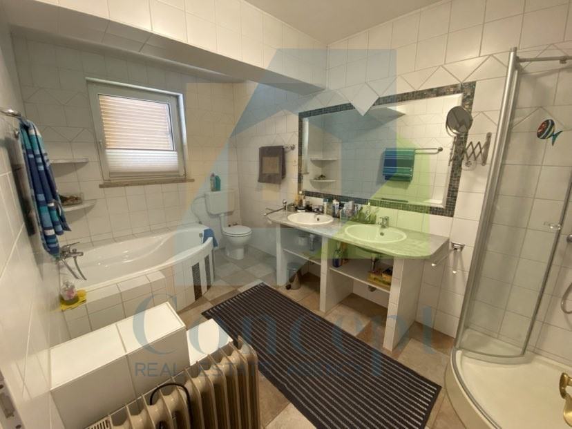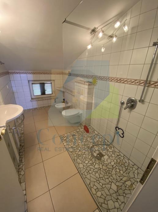 U suterenu se nalaze garaža, studio apartman i dodatni apartman od 65 m². Visoko prizemlje obuhvaća prostrani apartman s natkrivenom terasom (ukupno cca 140 m²), a na katu se nalazi još jedan apartman iste površine s nenatkrivenom terasom. Oba velika apartmana imaju po dvije spavaće sobe i dvije kupaonice.