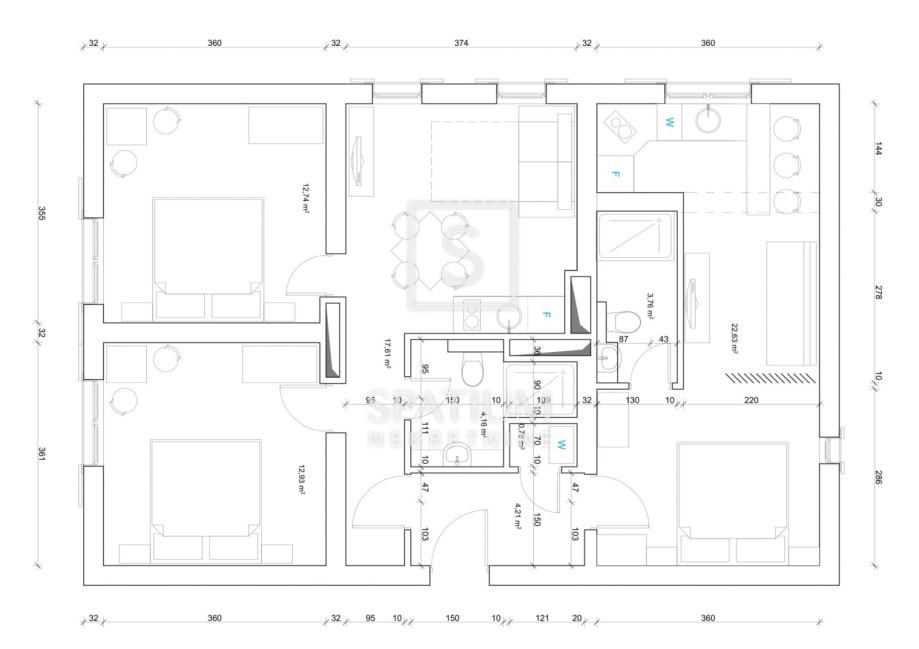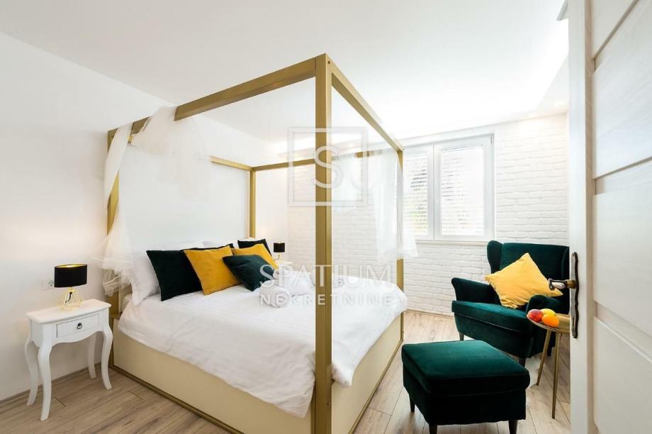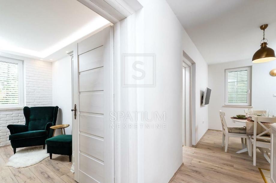Prva stambena jedinica čini komforan stan s dvije spavaće sobe, kupaonicom, blagovaonicom i dnevnim boravkom. Druga jedinica je funkcionalni studio apartman, idealan za turistički najam ili smještaj gostiju. Ulazni hodnik povezuje obje jedinice i sadrži praktičnu ostavu.