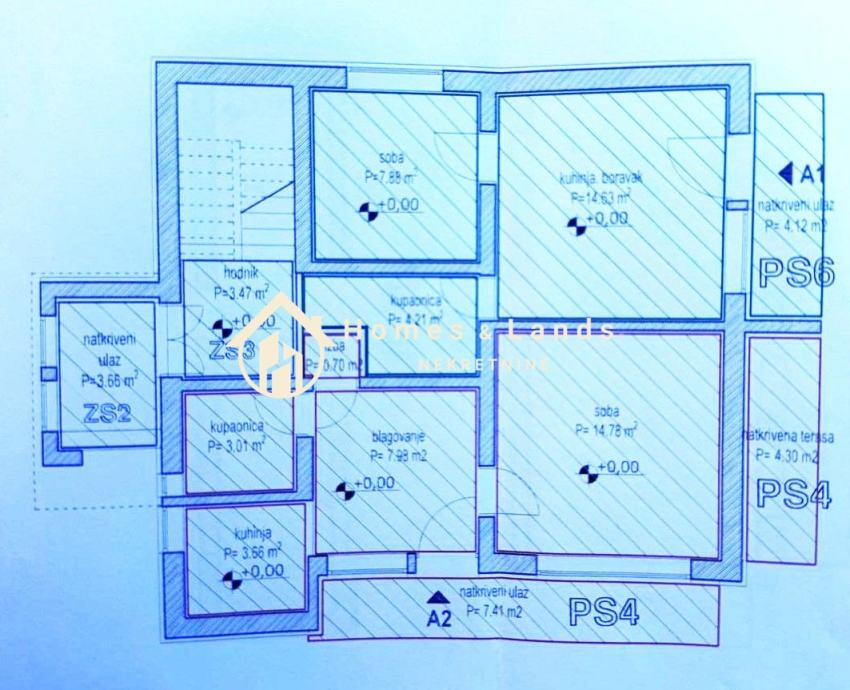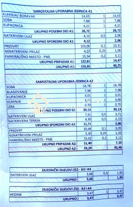Ukupna korisna površina: 153 m² (obračunski stambeno 43,25 m² + vrt)