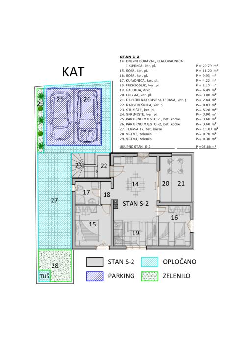 26. PARKIRNO MJESTO P2, bet. kocke Pbruto = 12.00 m², Pneto= 3.60 m²