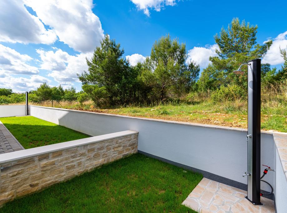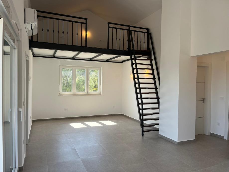 Sastoji se od dnevnog boravka sa blagovaonicom i kuhinjom, dvije spavaće sobe, galerije, kupaonice, predsoblja, loggie, nenatkrivene terase, spremišta, stubišta i privatnog dvorišta sa terasom, vrtom, solarnim tušem i prilazom sa dva parkirna mjesta.