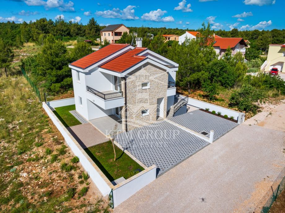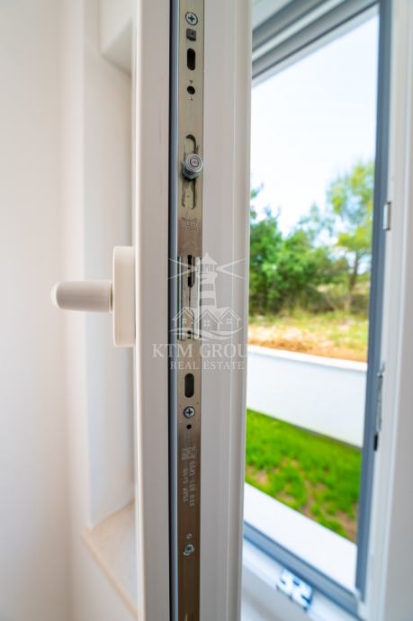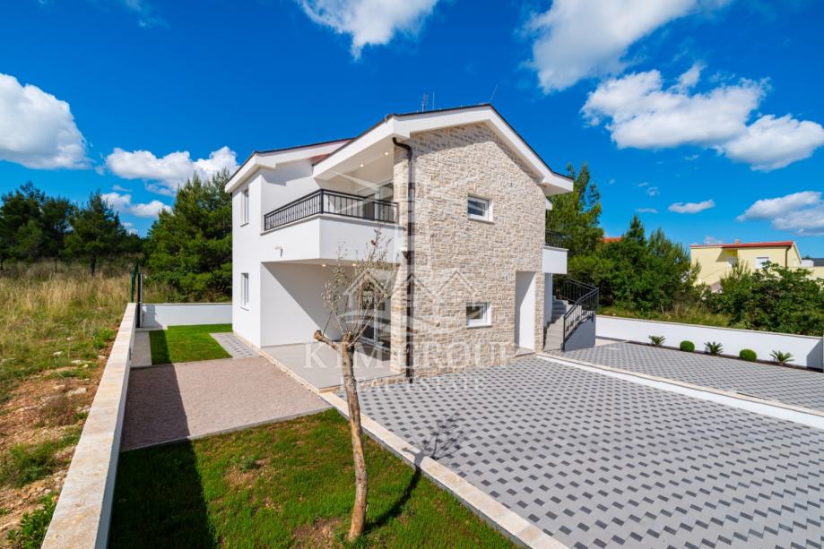 Dio dvorišta je popločano a dio je prekriveno zelenom površinom s provedenim sustavom navodnjavanja, gril, solarni tuš te dva parkirna mjesta.