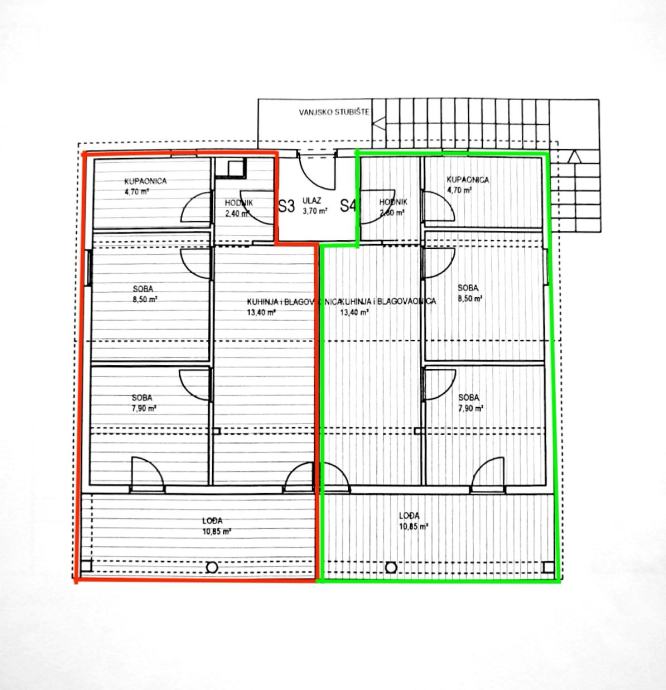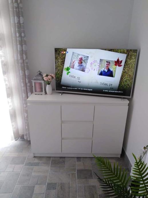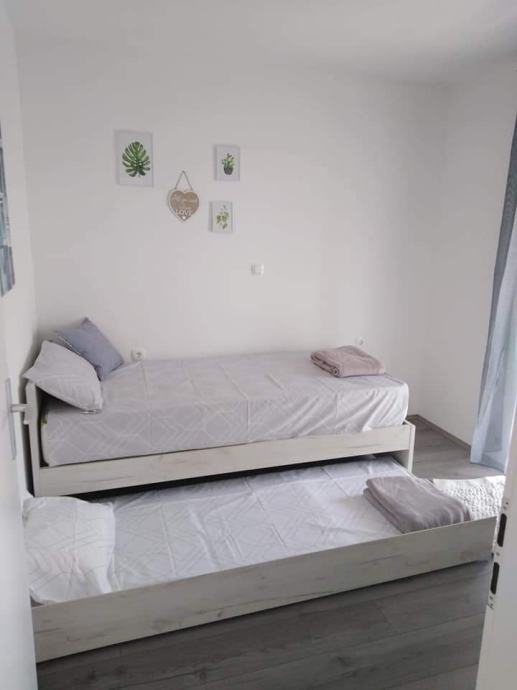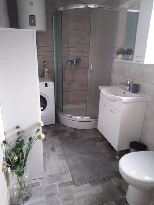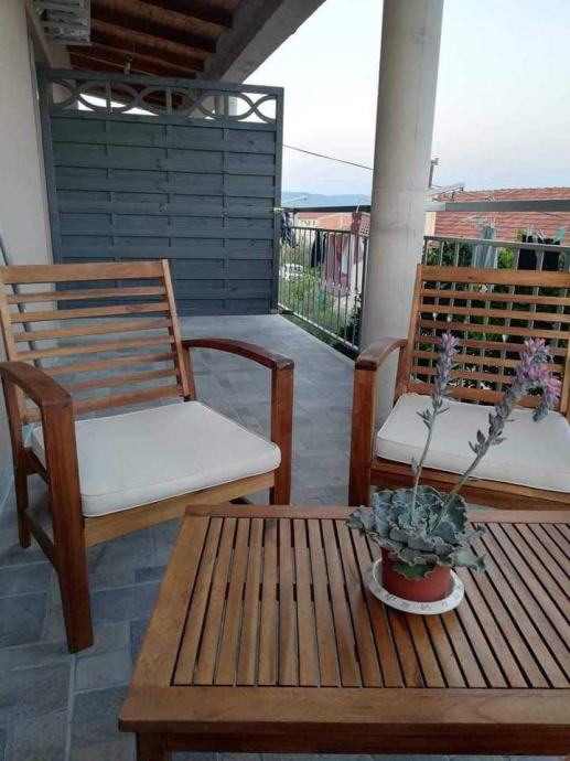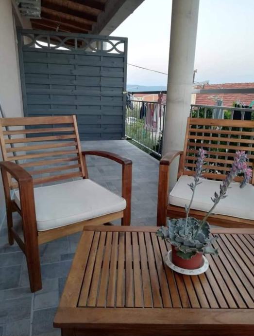 Prodaju se dva apartmana na 1. katu kuće. Kuća se sastoji od podruma, prizemlja i kata, ukupno pet stambenih jedinica. Apartman oznake S3 sastoji se od hodnika, kupaone, spavaće sobe (8,50 m2) I spavaće sobe (7,90 m2), ukupno stambeno 47,75 m2 plus lođa od 10,85 m2- ukupno po koeficijentima 50,79 m2 (tlocrt u privitku). Apartman oznake S4 približno istog rasporeda i kvadrature; stambeni dio 48,15 m2 lođe 10,85 m2. Pripada im jedno parkirno mjesto. Apartmani su etažirani, ali vlasnik ih želi prodati isključivo zajedno. Potpuno renovirano prije 4 godine i prodaje se s namještajem. Udaljenost do plaže 15 m. Sva dokumentacija uredna. Više informacija na upit.