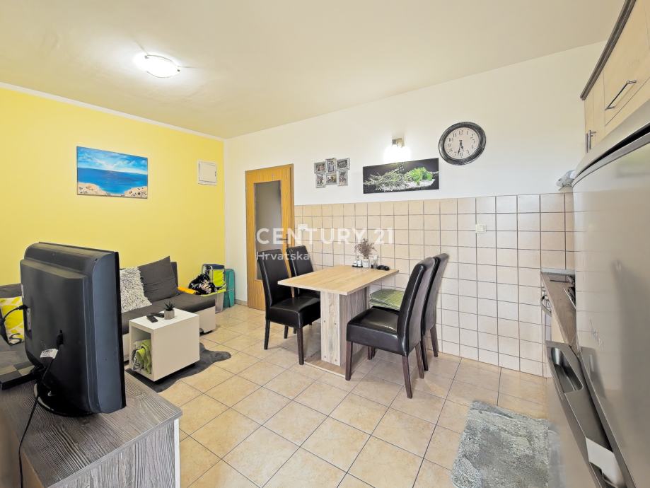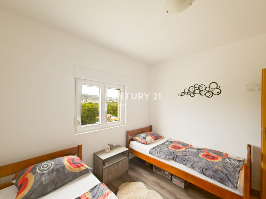 Ovaj 2,5-sobni stan (2S+DB) pruža ugodan ambijent za život, karakteriziran obiljem prirodnog svjetla zahvaljujući vrlo sunčanoj orijentaciji i lijepom pogledu na more i planine.
