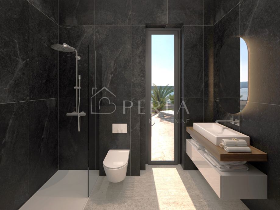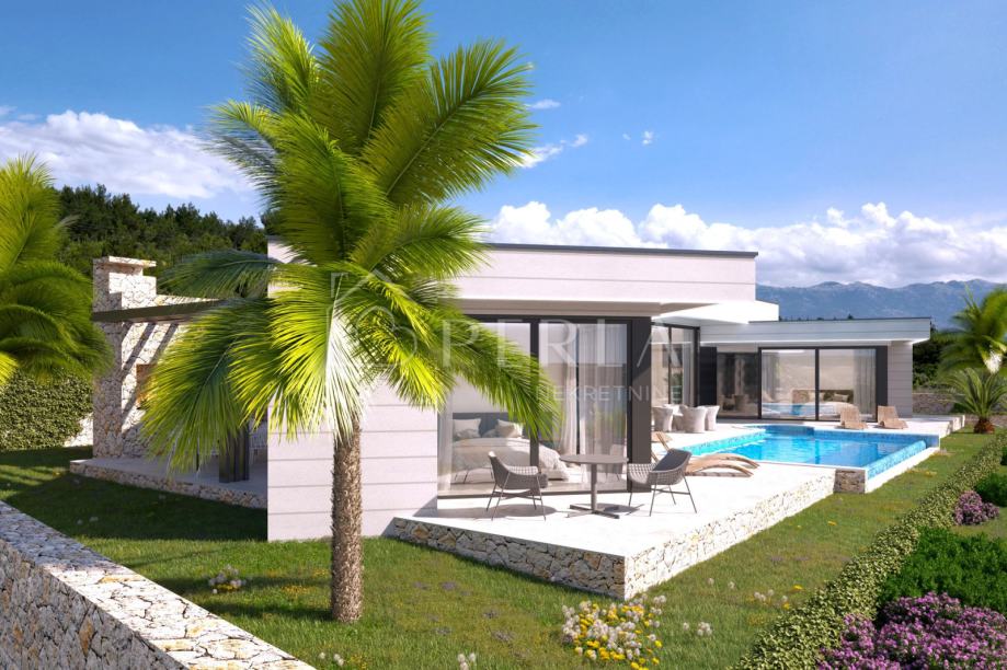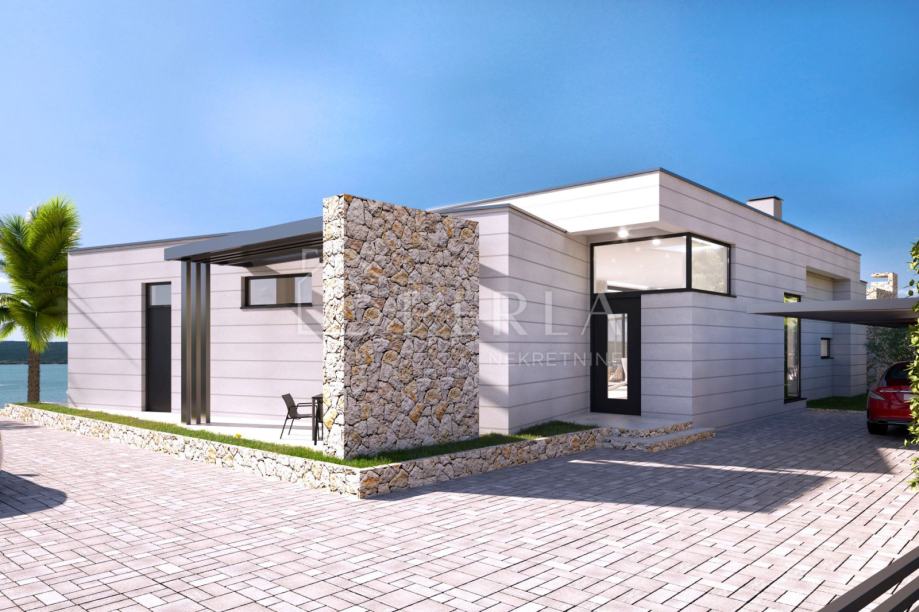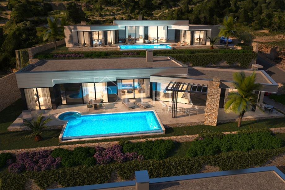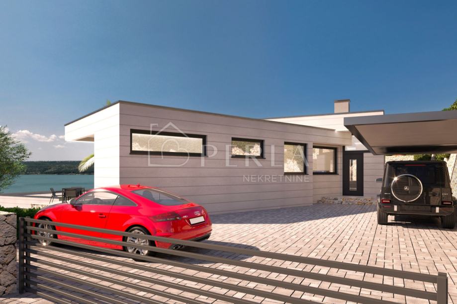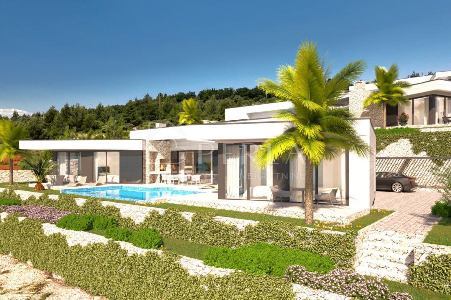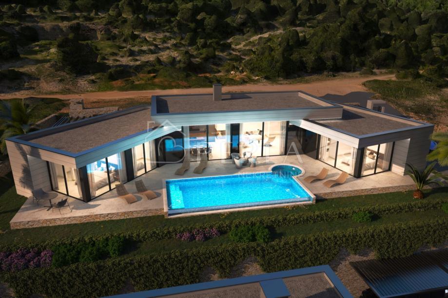 Vila je zamišljena kao prostrana prizemnica sa zanimljivim oblikom i tlocrtom, te sa savršeno pozicioniranim bazenom ispred objekta, na samo 220 m udaljenosti od mora.
