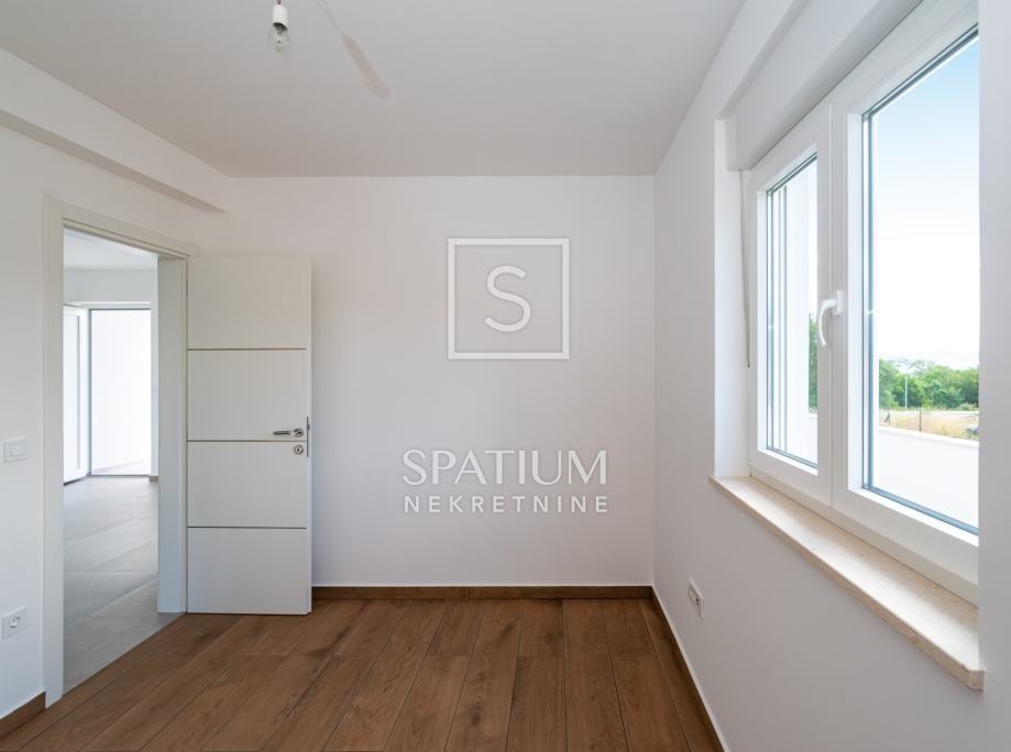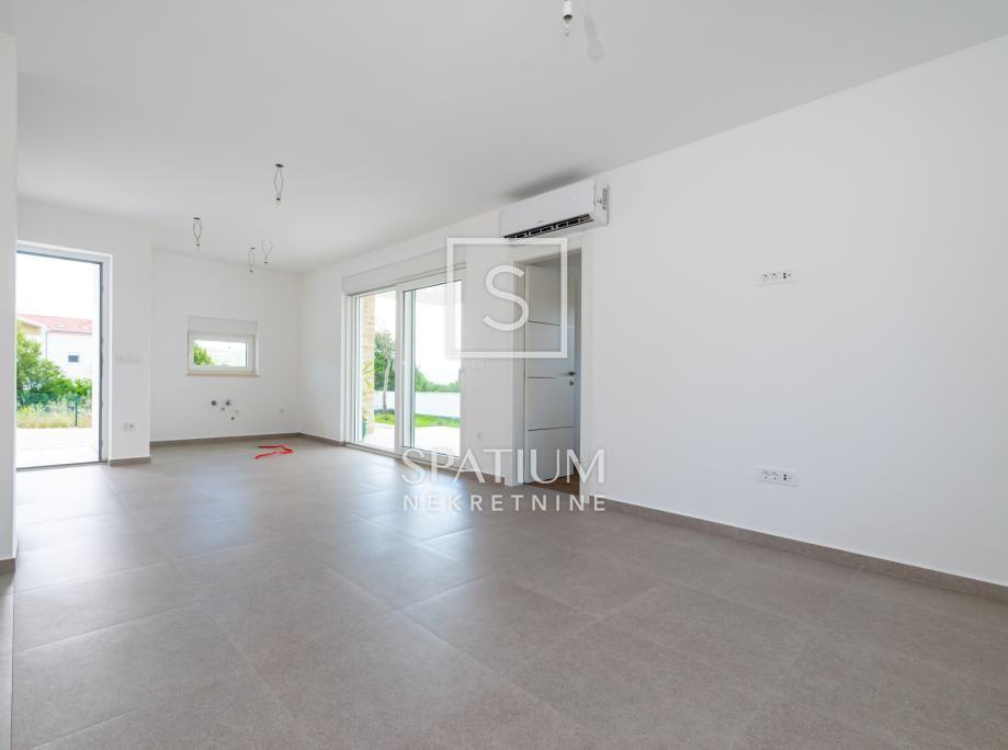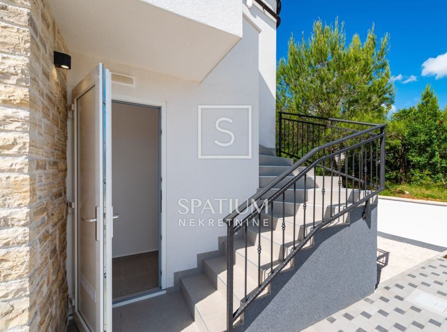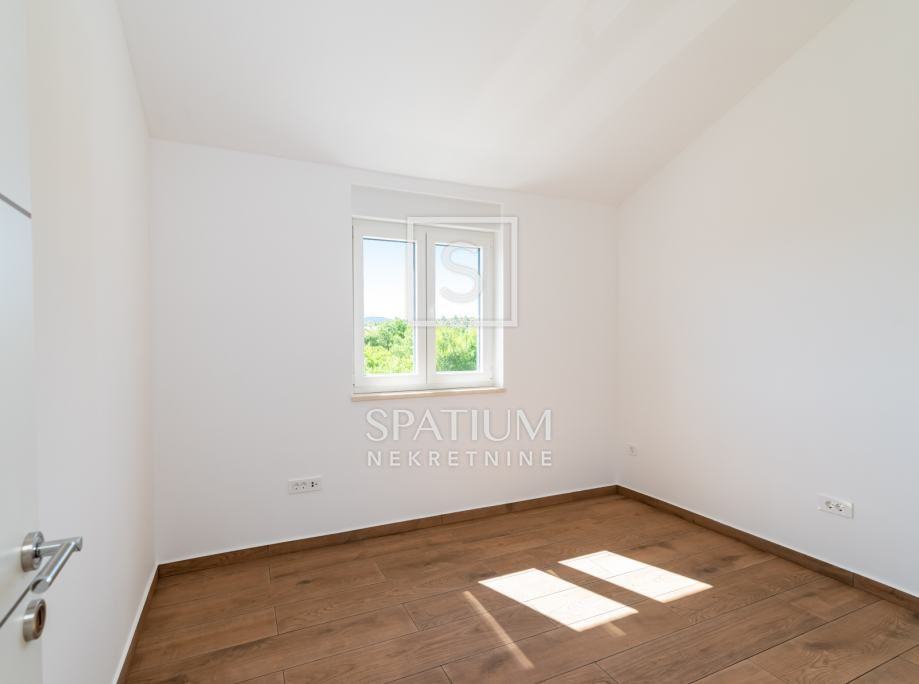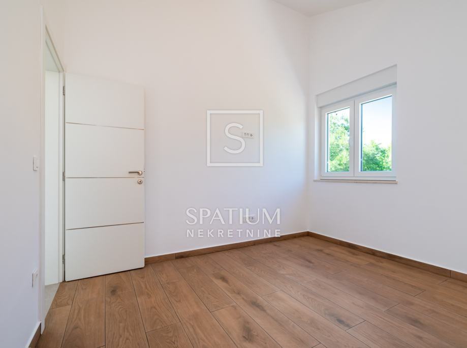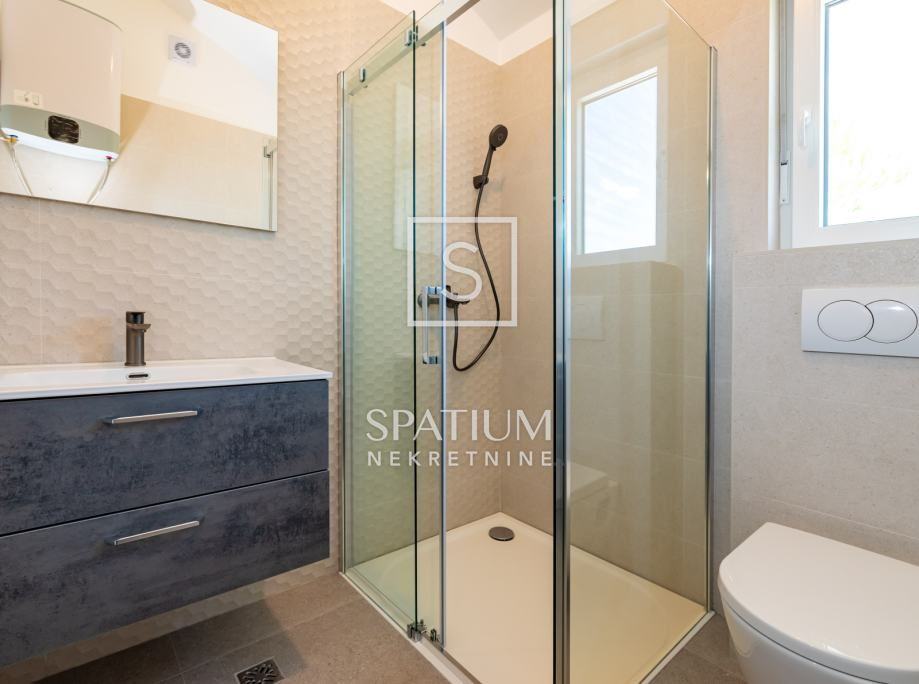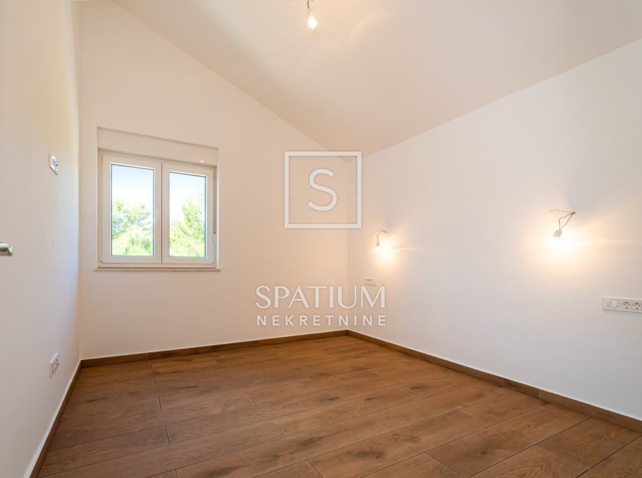POSEDARJE, u ponudu smo dobili novoizgrađenu kuću s dvije stambene jedinice, svaka čini jednu etažu. Stan u prizemlju sastoji se od ulaza, predsoblja, kupaonice, dvije spavaće sobe, dnevnog boravka, lođe i terase. Ukupna stambena površina iznosi 69,28 m2. Stan na prvom katu sastoji se od stubišta, ulaza, hodnika, kupaonice, dvije spavaće sobe, dnevnog boravka, lođe i terase. Ukupna stambena površina iznosi 75,85 m2. Kuća ima četiri parkirna mjesta, dvorište (90,52 m2) te dijelove vrta i zelenila (59 m2). Ukupna površina kuće sa svim pripadajućim površinama s koeficijentima iznosi 190,3 m2. Izgrađena je od visoko kvalitetnih materijala, postavljena je termo fasada s prirodnim fasadnim kamenom, PVC stolarija s električnim podizačima roleta i komarnicima, multi split klima uređaji te vrhunska keramika i sanitarije u kupaonici. Nekretnina se nalazi na veoma mirnom mjestu, s pogledom na zelenilo i more, a udaljena je od prve pješčane plaže samo 500 m. Odlična prilika za investiciju u svrhu turizma ili kao opcija za život obitelji. Za napomenuti je da je cijela kuća trenutno u fazi etažiranja te će po projektu svakom stanu pripasti dva parkirna mjesta i dio okućnice te će isto biti uvedeno u vlasnički list.
