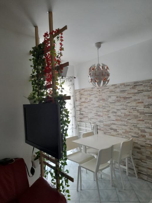 Odličnog je rasporeda i sastoji se od: 2 sobe, kuhinje+blagavaonice, hodnika, kupaonice sa tuš kadom, te natkrivenim balkonom sa pogledom na more.