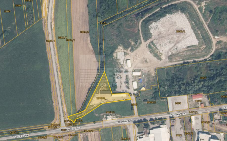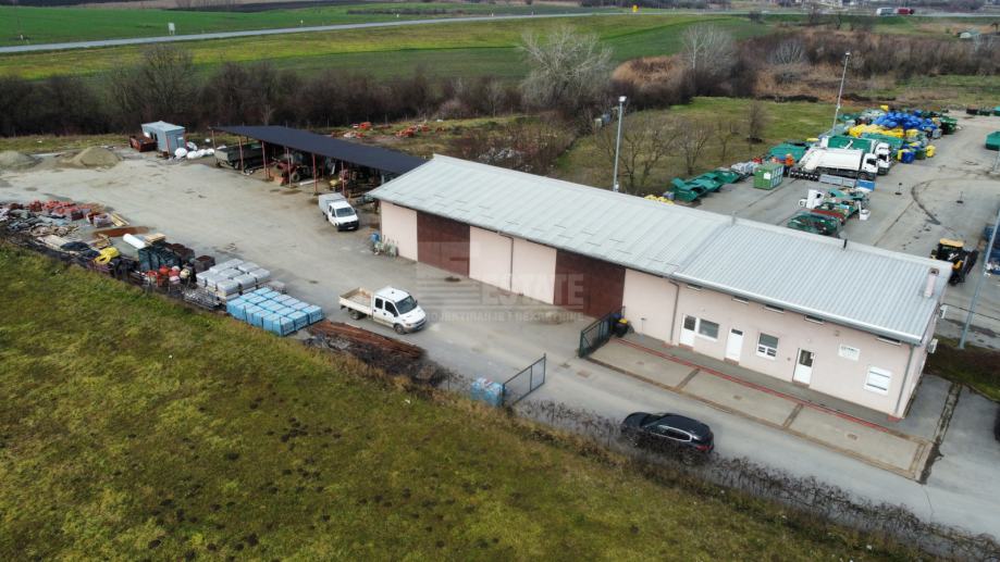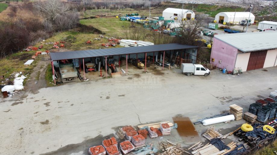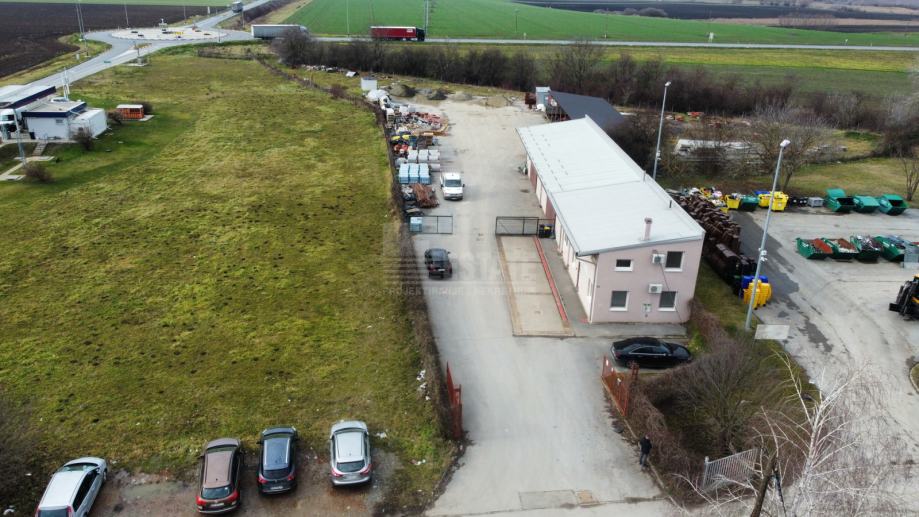 Pozicioniran je na zemljištu od 5620 m2, u potpunosti ograđeno, s pristupom na javnu površinu, a uz poslovni objekt sadržava i 2000 m2 asfalitrane manipulativne površine, 50T kolnu vagu s komandama unutar zgrade te nadstrešnicu s čeličnom konstrukcijom površine cca 270 m2 (otvoreni skladišni prostor).