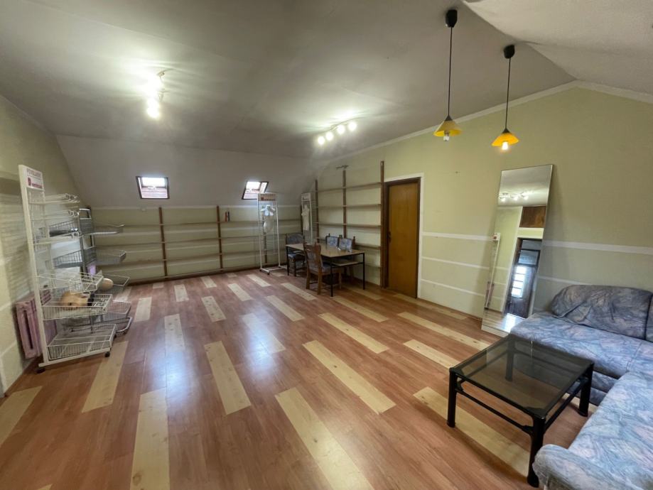 Na katu se nalaze stepenice, sanitarni čvor, čajna kuhinja, dvije uredske prostorije, stepenicama se na poluetaži nalazi potkrovlje u kojem je uređena jedna veća prostorija (može se koristiti za ured i slično), te neuređeni dio jedna prostorija, iz te prostorije moguće je spustiti se u skladište stepenicama u prizemlje (na slikama žute stepenice).