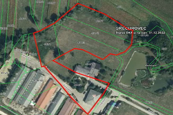 • Poslovna zrada poljoprivredne, skladišne namjene, koja se nalazi na zk.č.br. 414/1, te zk.č.br. 411/1, 411/2, 411/3 i 413/1, koje su poljoprivrednog korištenja, a sve u k.o. Gregurovec, u naselju Ferežani, koje pripada općini Sveti Petar Orehovec, na adresi Ferežani 17