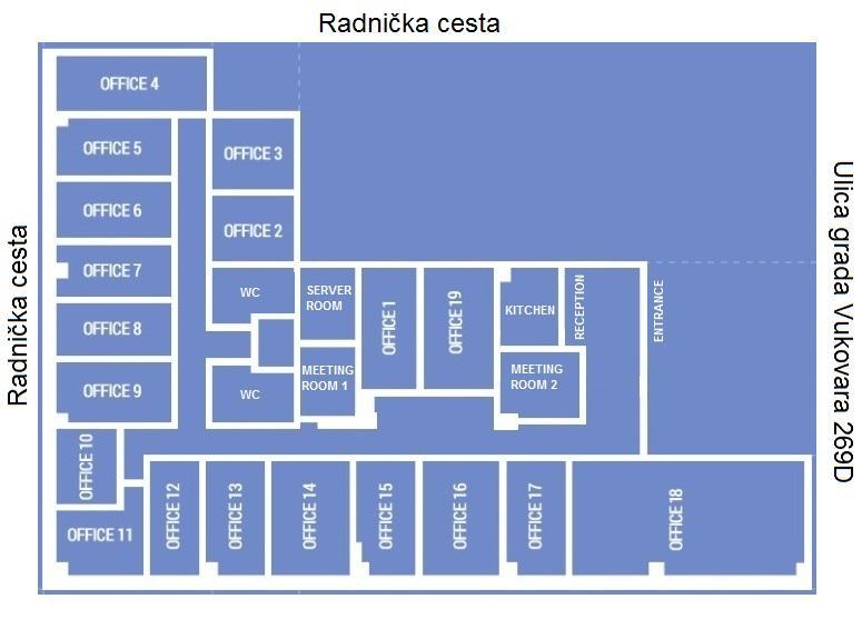 Uredi se nalaze u modernoj poslovnoj zgradi VMD Centra na prestižnoj lokaciji u Ulici grada Vukovara 269d, u srcu poslovne zone Zagreba.Poslovni centar VMD odlikuje se visokom razinom sigurnosti, reprezentativnim izgledom te izvrsnom prometnom povezanošću, što ga čini IDEALNIM IZBOROM za ozbiljne poslovne korisnike.