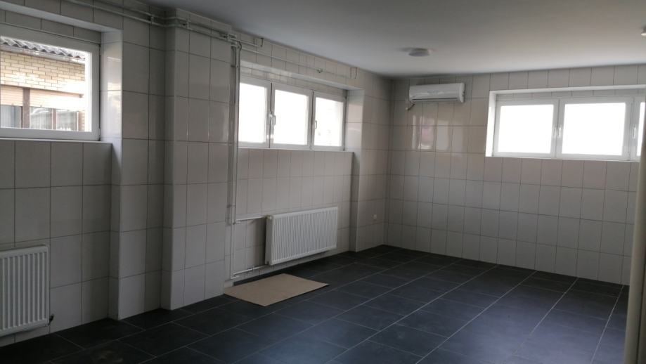 Opremljena za proizvodni prehrambeni pogon, zidovi su u pločicama 4m visine, podovi su u pločicama pogodno za viličar ( 10 mm debljine ).