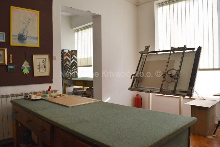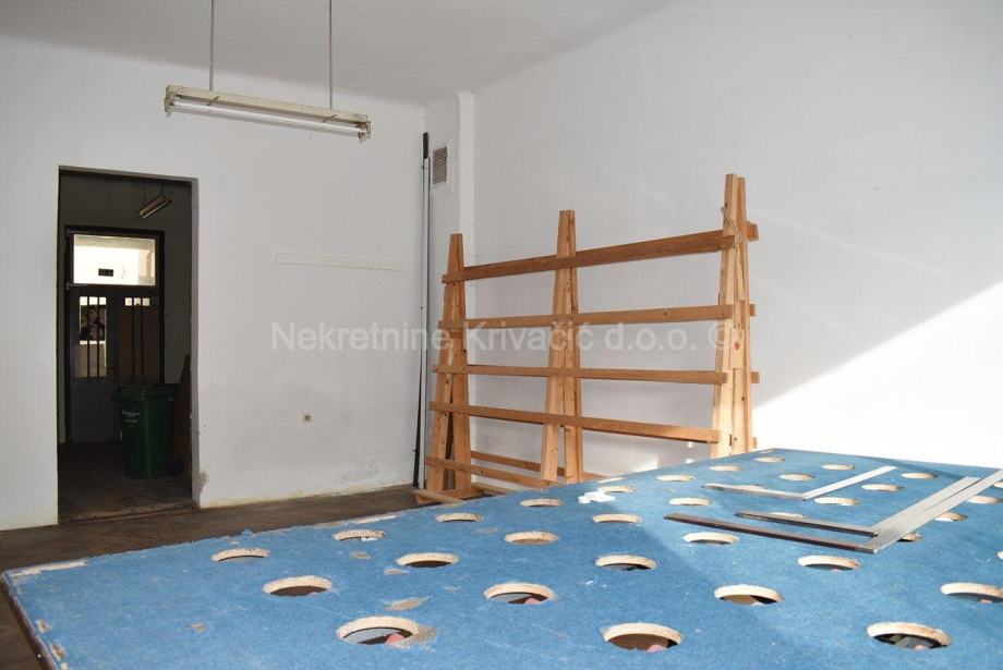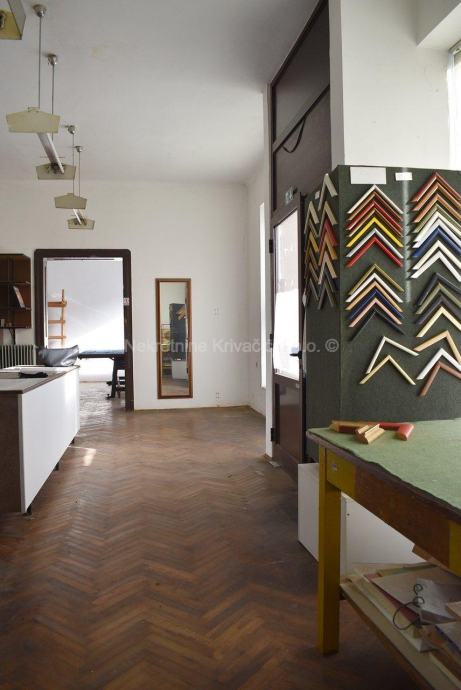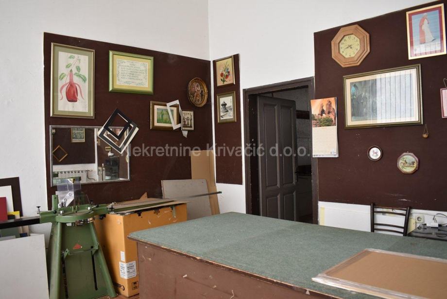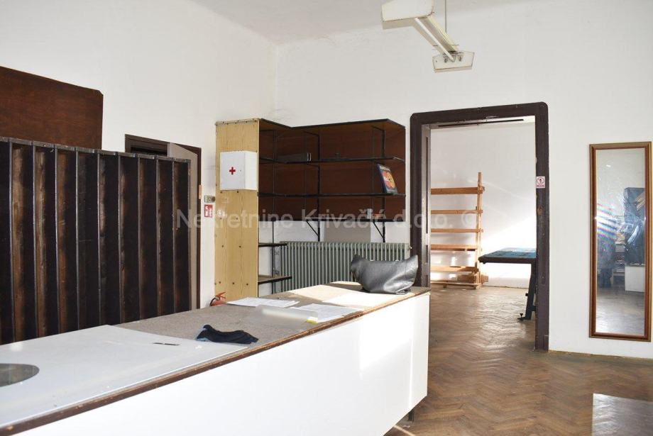 Atraktivan poslovni prostor u strogom centru grada, poznat kao bivša staklana. Ukupne stambene površine 478 m2 što čine dvije zgrade: glavna zgrada do ulice sa tri velika ulična izloga i tri velike prostorije s izlazom na ulicu. Prema dvorištu su dvije sobe, te pomoćne prostorije i sanitarni čvorovi. Ukupno 325 m2, dodatno podrum slične kvadrature ( ulaz kroz kuću). Tavan je vrlo visok i prostran kao što je uobičajeno u takvim zgradama, gdje je iskoristivost cca 200m2, također ulaz kroz kuću.