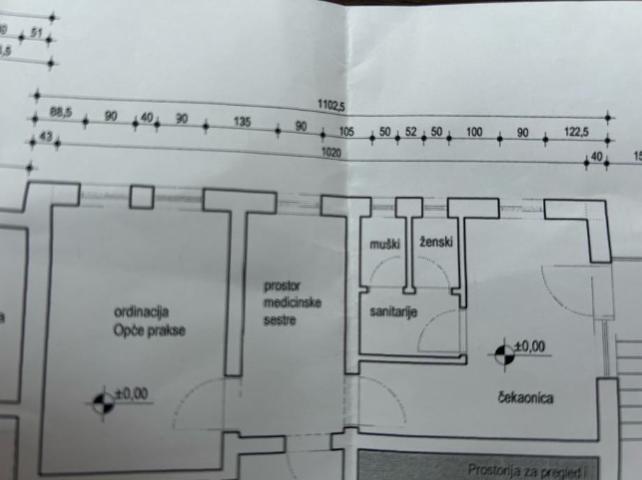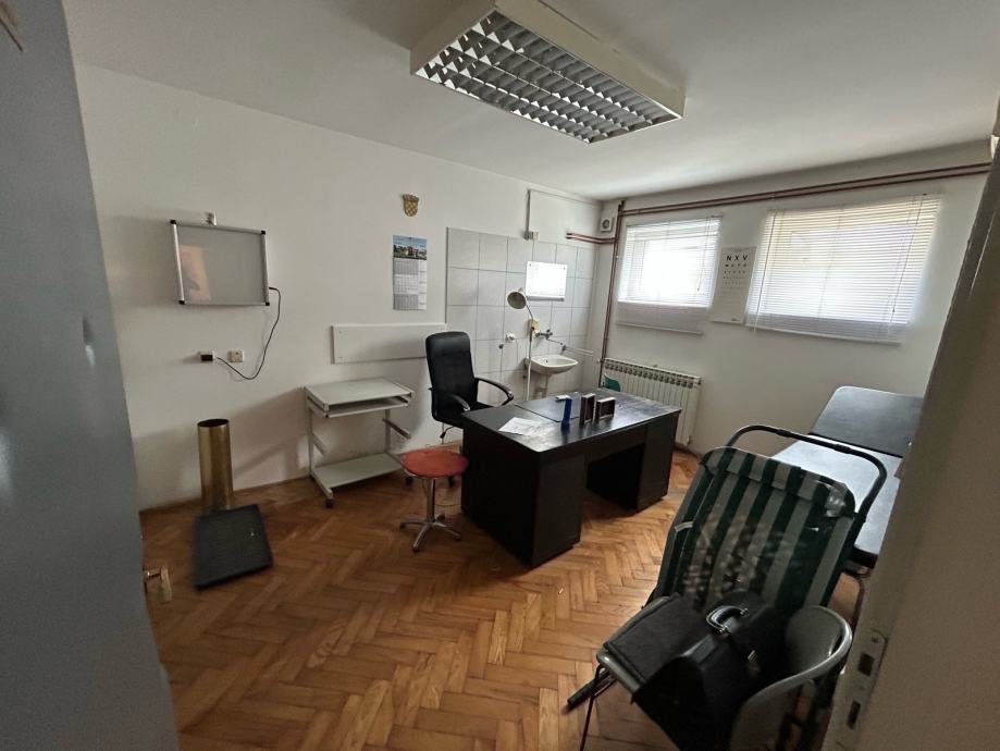 Poslovni prostor koji je prije služio kao ordinacija opće medicine, sa 3 zasebne sobe; čekaonicom u sklopu koje su 2 wc-a (cca 20 m2), soba gdje je sjedila medicnska sestra (cca 10 m2) i soba za doktora (cca 15 m2).