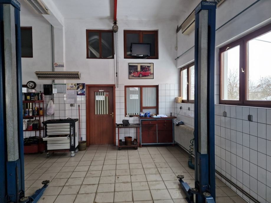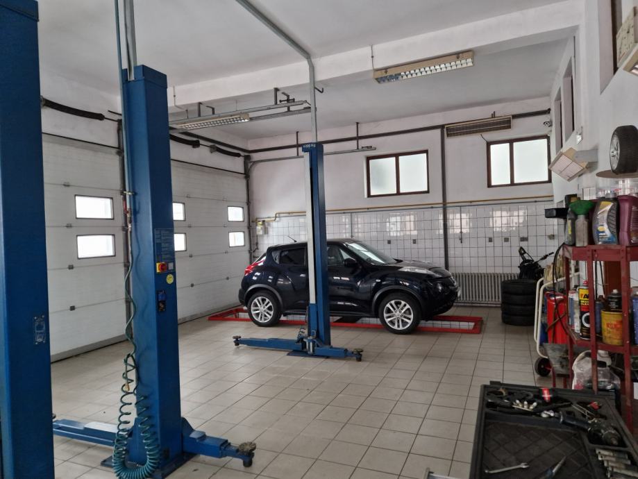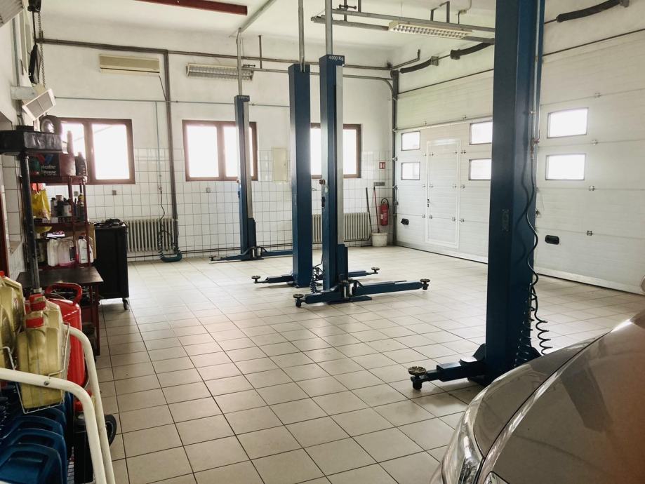 Na placu je hala s troje vrata za automobile. U hali su dvije dizalizice za automobile i kanal, te kompletna oprema sa svim potrebitim dozvolama. U sklopu je i skladište, pomoćna radiona te prostorina za odmor.