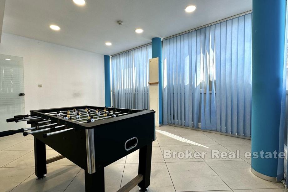 Povlaštena lokacija omogućuje brz pristup svim važnim sadržajima, poput trgovina, restorana i bolnice. U blizini se nalaze javna parkirališta, s opcijama besplatnog i naplatnog parkiranja, što osigurava dodatnu pogodnost zaposlenicima i klijentima.