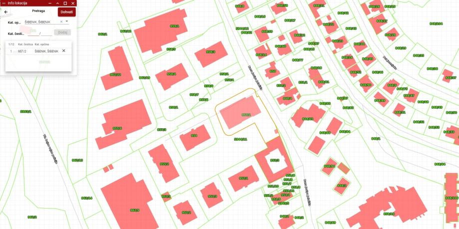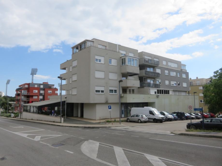 Predmetna nekretnina su tri etažne cjeline stambeno-poslovne zgrade u Šibeniku. Smješteni su u prizemlju i suterenu zgrade. Zgrada je izgrađena na terenu pada prema jugozapadu, tako da su ulazi u predmetne suvlasničke dijelove na obje etaže u razini tla. Prvi dio nekretnine je upisan u poduložak 23 i predstavlja spremište sa tehničkim prostorom. U naravi je uređen kao skladišni prostor supermarketa i sastoji se od skladišta, tri rashladne komore, ureda, sanitarnog čvora i garderobe, te od dvije strojarnice koje su u vlasničkom listu opisane kao tehnički prostor. Skladište je više razine opremljenosti, ima izvedenu klimatizaciju kao i ventilacijski sustav. Održavanje prostora je redovito te je trenutno izvan uporabe. Ulaz u skladište je izveden garažnim segmentnim podiznim vratima na jugoistočnom pročelju zgrade u razini tla, odnosno parkirališta pokraj zgrade. Sa lokalom na prvom katu zgrade, skladište je povezano internim metalnim stubištem i internim teretnim dizalom nosivosti 2000 kg. Drugi dio nekretnine je upisan u poduložak 24 i predstavlja tehnički prostor u razini prizemlja zgrade. Tehnički prostor je strojarnica pozicionirana na južnom rubu zgrade. Strojarnica ima zaseban ulaz izveden na jugoistočnom pročelju zgrade izveden bravarskim vratima u razini tla. Treći dio predmetne nekretnine je upisan u poduložak 25 i predstavlja poslovni prostor na prvom katu zgrade sa pripadajućim vrtom. Predmetni dio je lokal, u naravi podijeljen zidom od gips-kartonskih ploča na dva dijela, sjeverni i južni. Sjeverni dio je uređen kao maloprodajna trgovina robe široke potrošnje - supermarket. Standardne je razine opremljenosti. Ulaz u supermarket je izveden automatskim dvokrilnim kliznim vratima pozicioniranim na sjeveroistočnom pročelju zgrade. Ulaz je u razini tla, a pristup mu je osiguran popločanim platoom koji je dio okoliša zgrade.. Održavanje prostora je redovno te je trenutačno u zakupu. Južni dio poslovnog prostora na prvom katu zgrade ima ulaz na jugoistočnom pročelju, pozicioniran neposredno uz ulaz u stubište zgrade. Pristup ulazu je osiguran krakom navedenog popločanog platoa, a do kojeg je omogućen dodatni pristup vanjskim stubama uz jugoistočno pročelje zgrade. Južni dio je također lokal, u prošlosti korišten kao drogerija te kao fitness centar, a sastoji se od prodajnog prostora i prostora za djelatnike u sklopu kojeg su hodnik, spremište i sanitarni čvor. Prostor je standardne razine opremljenosti, redovno se održava i u trenutku očevida je izvan uporabe.