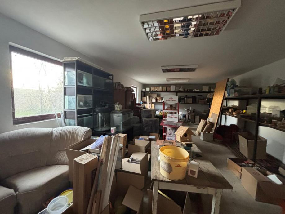 Prodaje se stambeni + poslovni prostor u Bartolovcima smješten na lijepoj pravokutnoj čestici (4610 m2) širine fronte 24 metra. Nalazi se na frekventnoj lokaciji udaljenoj 8 kilometara od Slavonskog Broda. Sastoji se od stambenog prostora (77 m2) u skolpu kojega se nalaze 3 sobe, kuhinja te sanitarni čvor. Skladište (182 m2) na 2 etaže (gornja grijana) te poslovnog prostora (133 m2) pozicioniranog prema ulici. U doljnjem djelu čestice nalazi se izlaz na sporednu ulicu. Posjeduje priključke struje, plina te kanalizacije dok je sustav vodoopskrbe putem bunara.
