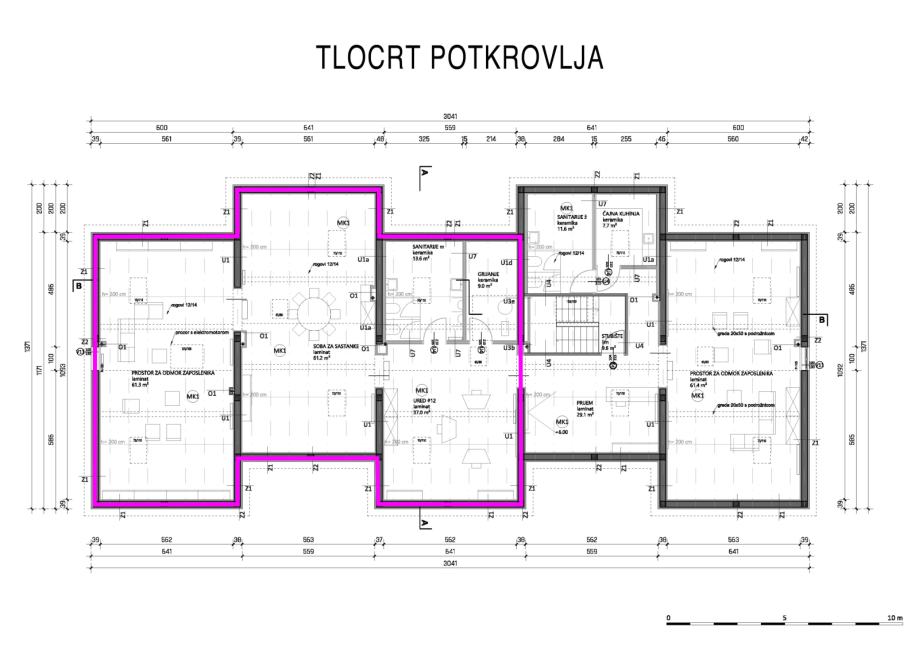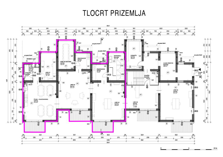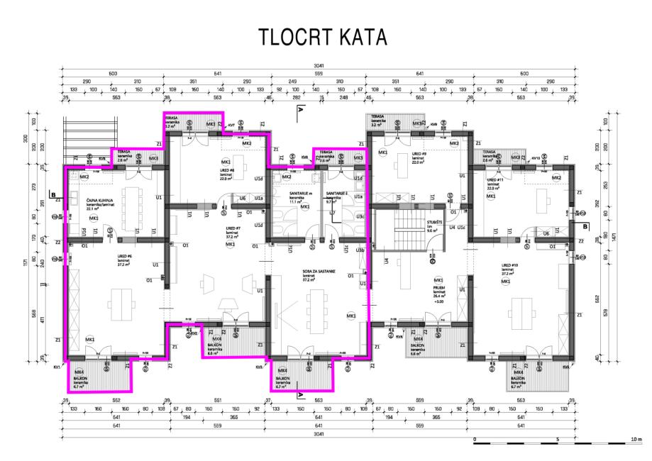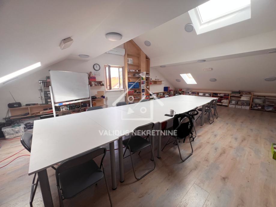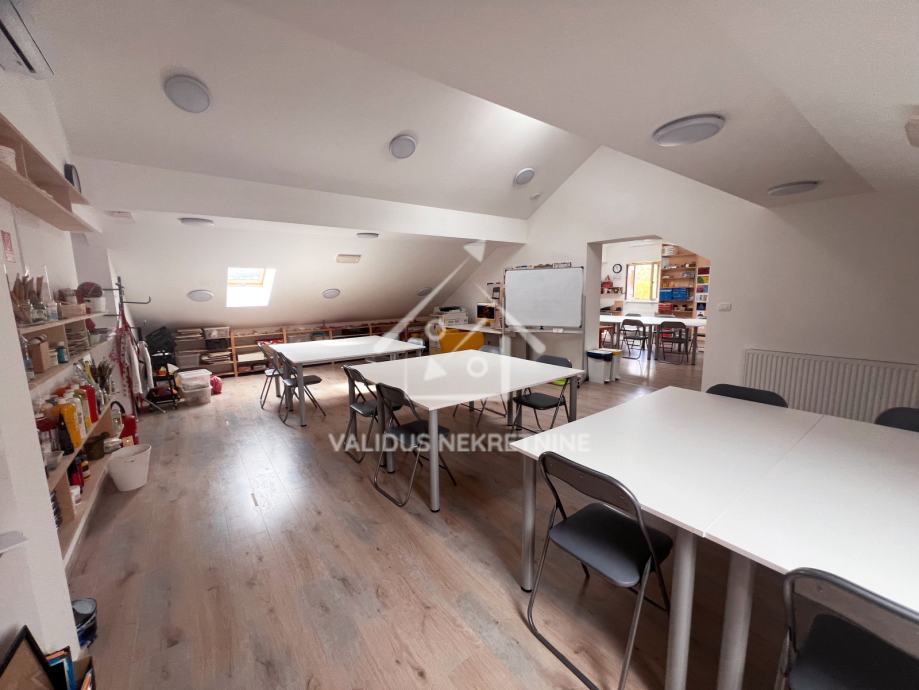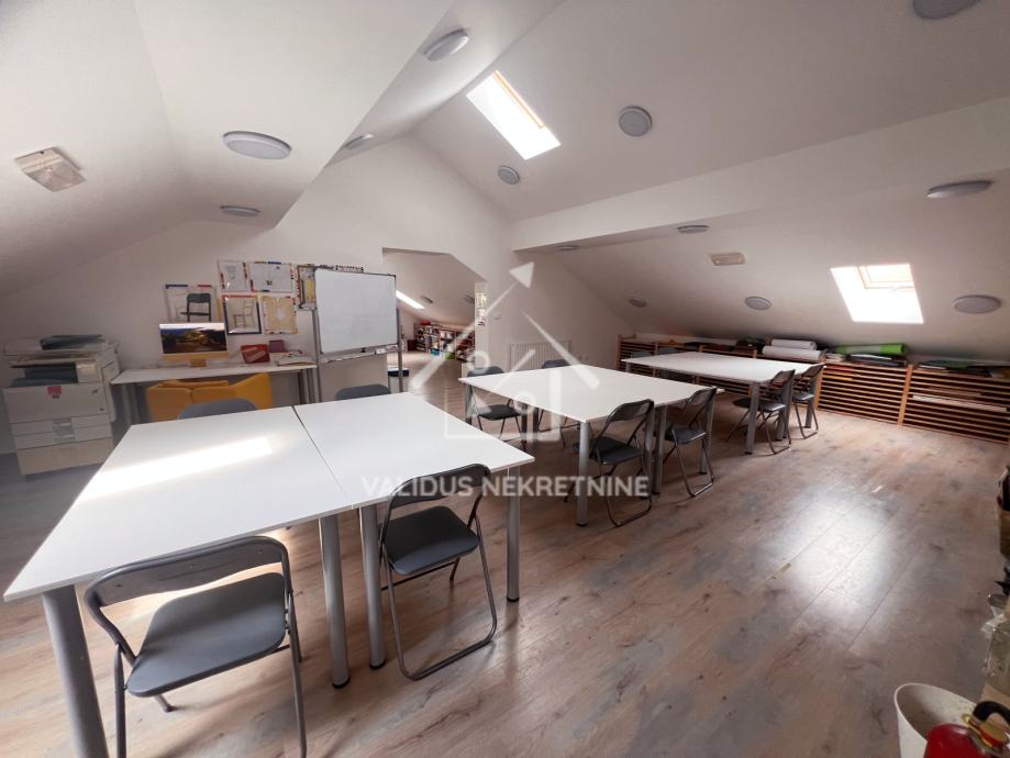 Posredujemo u prodaji prekrasnog poslovnog prostora smještenog u Samoborskim vrtovima. Prostor je površine 546,86 m2 neto. Čine ga tri spojene kućice u nizu. Svaka od njih prostire se na tri etaže: prizemlje, kat i potkrovlje.