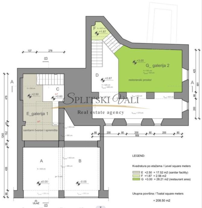 Posredujemo u najmu poslovnog prostora u samom centru grada. Prostor je idealan za ugostiteljstvo ili slične djelatnosti. Površina prizemlja bez galerije iznosi 160m2, a s galerijom 208m2. Visina stropova je 6 metara, te je prostor u Roh Bau stanju. Dugoročan zakup, te cijena iznosi 63€ po m2 + pdv. Zakupoprimac plaća posredničku naknadu u iznosu jedne mjesečne najamnine + pdv. Razgled nekretnine moguć je uz potpis ugovora o posredovanju, sukladno Zakonu o prometu nekretninama. Za više informacija nazovite na 099 1600 416 Dino ili 091 721 6115 Ante.