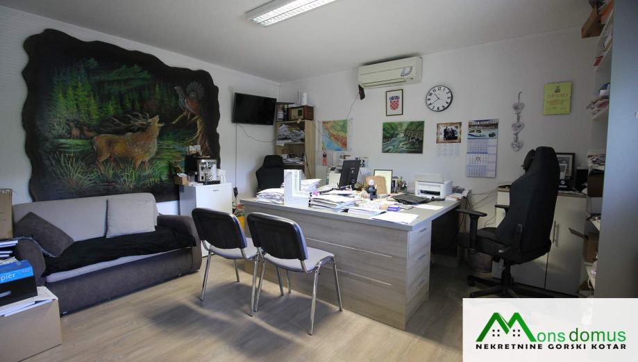 U prizemlju se nalaze dva uređena uredska prostora, dva sanitarna čvora, kotlovnica sa peći na drva iz koje je provedeno centralno grijanje po cijeloj zgradi, kuhinja i prostor za odmor radnika te proizvodni pogon. Prizemlje je moguće pregraditi i podijeliti na dva poslovna prostora sa zasebnim ulazima.