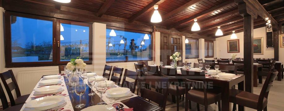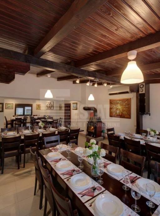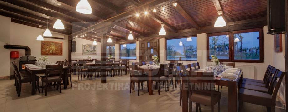 Ugostiteljski objekt - restoran, registriran kao OPG za pružanje usluga u seoskom domaćinstvu. Smještajni kapaciteti za 100 sjedećih mjesta, sa profesionalnom kuhinjom, pečenjarnicom i šankom, te ostalom pripadajućom opremom, 4 sanitarna čvora + prostorija i WC za osoblje. Ispred objekta nalazi se asfaltirano parkiralište za 12 automobila, a moguć je i ulaz autobusa na parcelu. Objekt se prostire na lijepo uređenom zemljištu od 1724 m2 s vinogradom i sjenicom na vidikovcu prema Dunavu. Izuzetno je prikladan za veće proslave i turističke grupe. Uz navedeno je moguća, i preporučena, kupovina starije kuće te vinskog podruma (trenutno u funkciji restorana) na zemljištu površine 2200 m2, odmah uz restoran, uz nadoplatu od 20 000 €.
