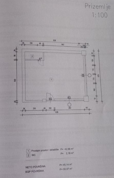 Prostor je u prizemlju u stambenoposlovnoj zgradi, a površine je 41,64 m2.