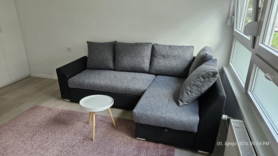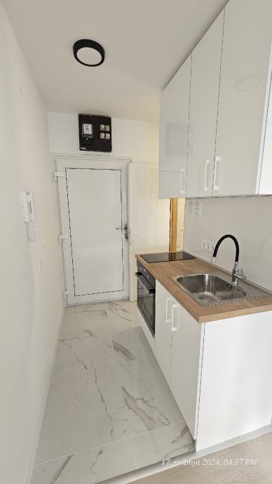 Utrina-Novi Zagreb, iznajmljuje se djelomično namještena, novouređena garsonijera površine 20,48 m2 u visokom prizemlju kvalitetnog stambenog objekta.