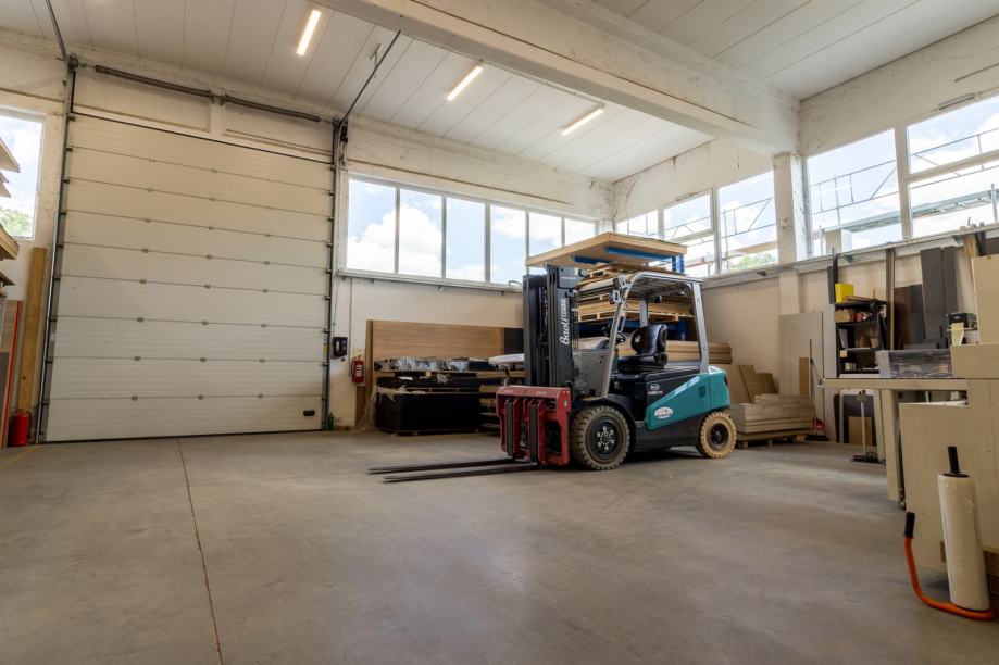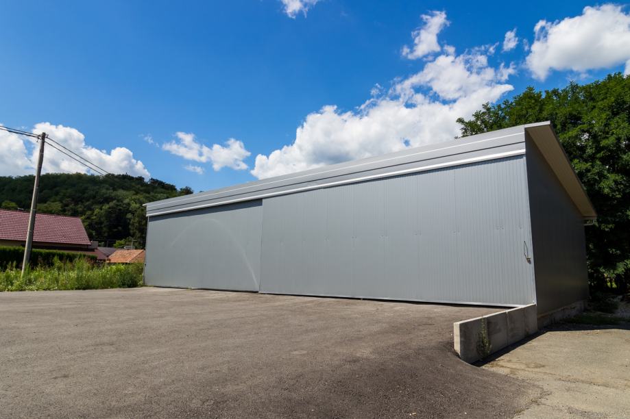 Pored poslovnog prostora se nalazi i montažna skladišna hala površine 150 m2, koja dodatno proširuje kapacitete za skladištenje ili proizvodnju. Dvorište je asfaltirano, sa dovoljno mjesta za parkiralište te je pogodno za kamionski prijevoz.