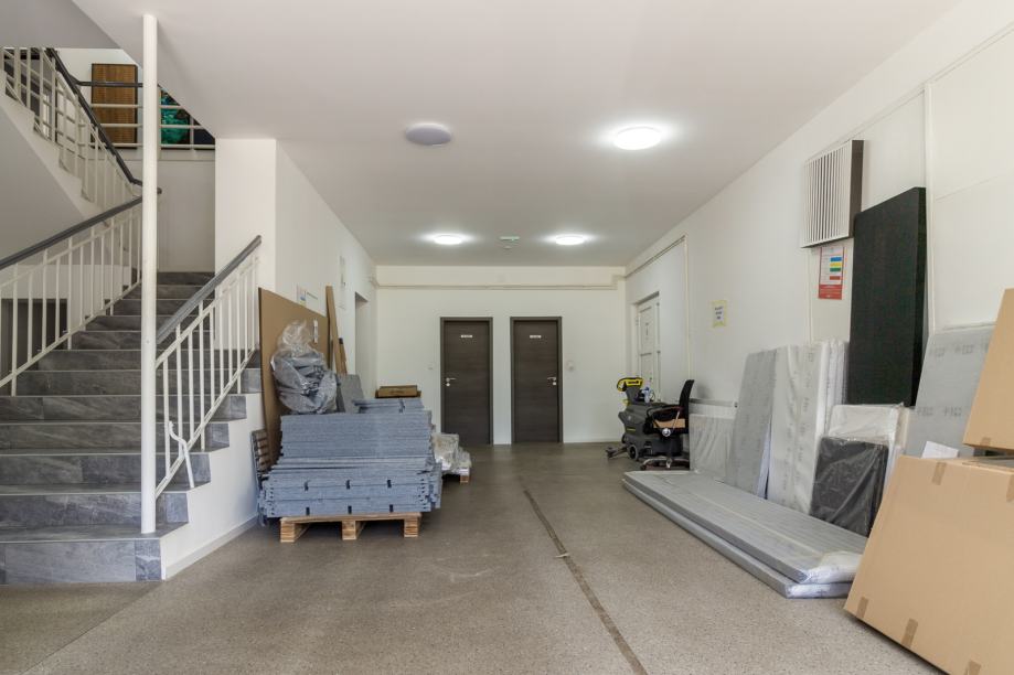 Prostor je moderno opremljen, s visokim stropovima, ventilacijom, klimatizacijom i centralnim grijanjem, što omogućuje ugodnu i učinkovitu radnu okolinu.