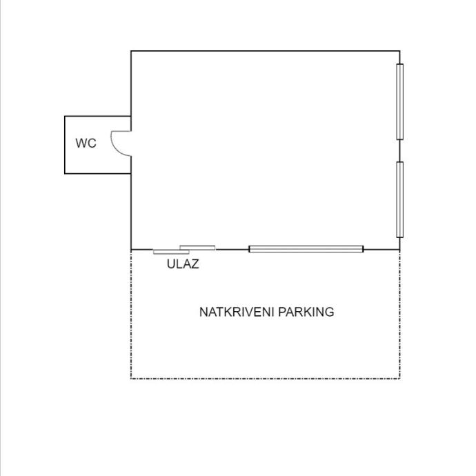 Parking je javni besplatni, a poslovnom prostoru pripadaju 4 parkirna mjesta koja su osigurana ogradom.