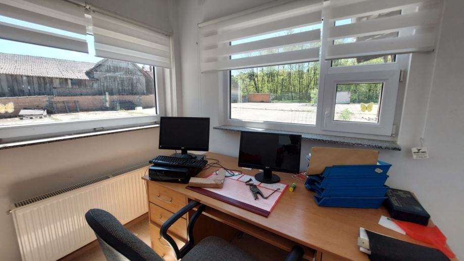 U zatvorenom skladišnom prostoru nalazi se uredski prostor, čajna kuhinja i sanitarni čvor, struja trofazna 13.2 kw.