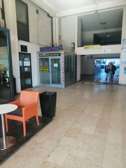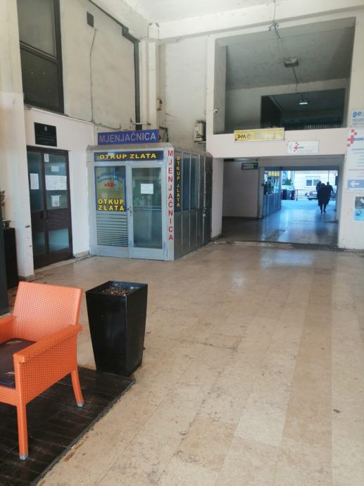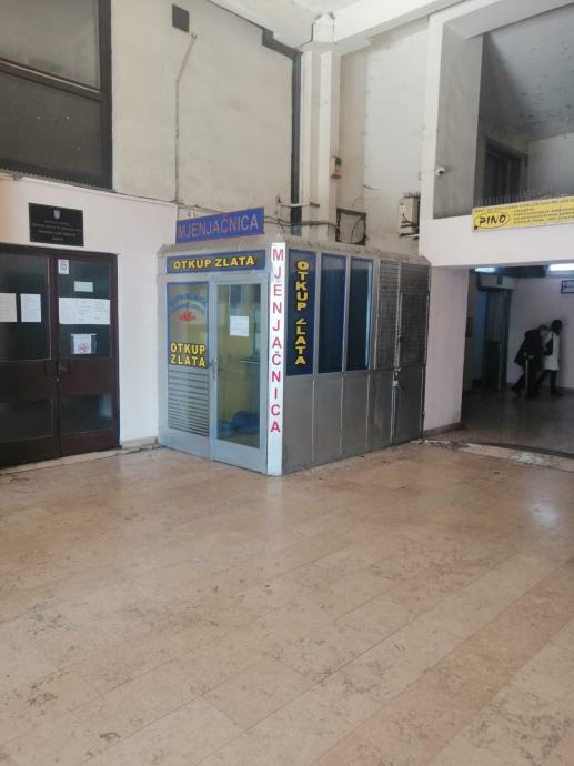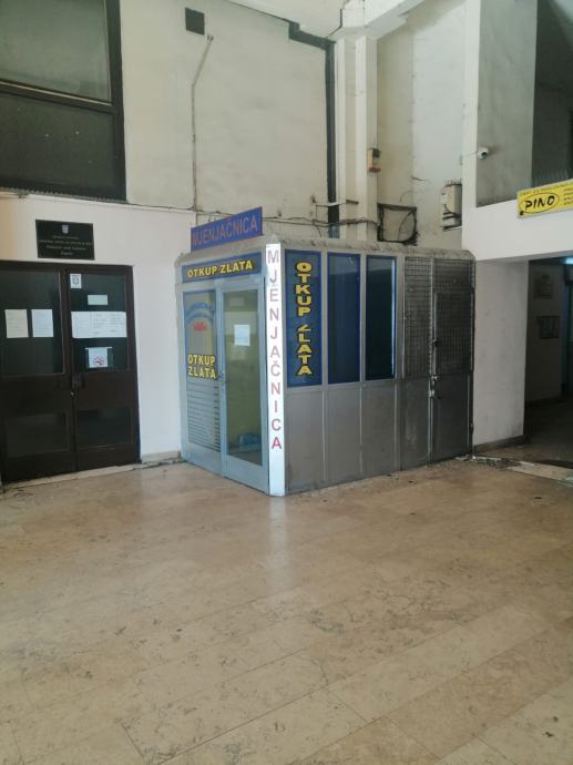 U prostoru je bila mjenjačnica, okvirno oko 8 m2, struja, klima uređaj, sanitarni čvor nema.