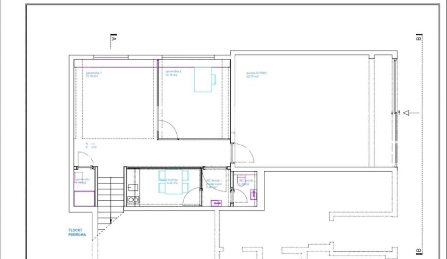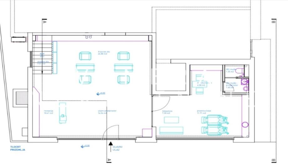 Dvoetažni poslovni prostor, u nacrtu označen oznakom L1, u podrumu podne površine 54,97 m2,