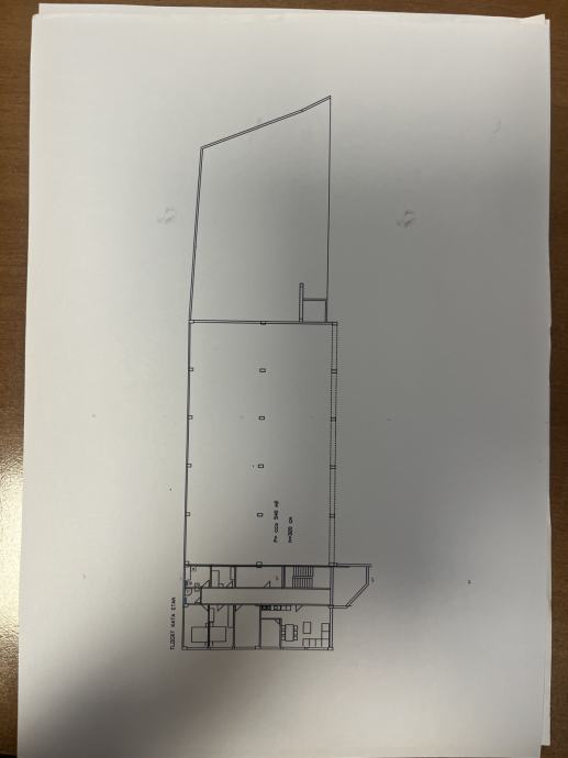 U prizemlju prostor od 540 m2 visine 500cm i 160 m2 visine 300 cm.